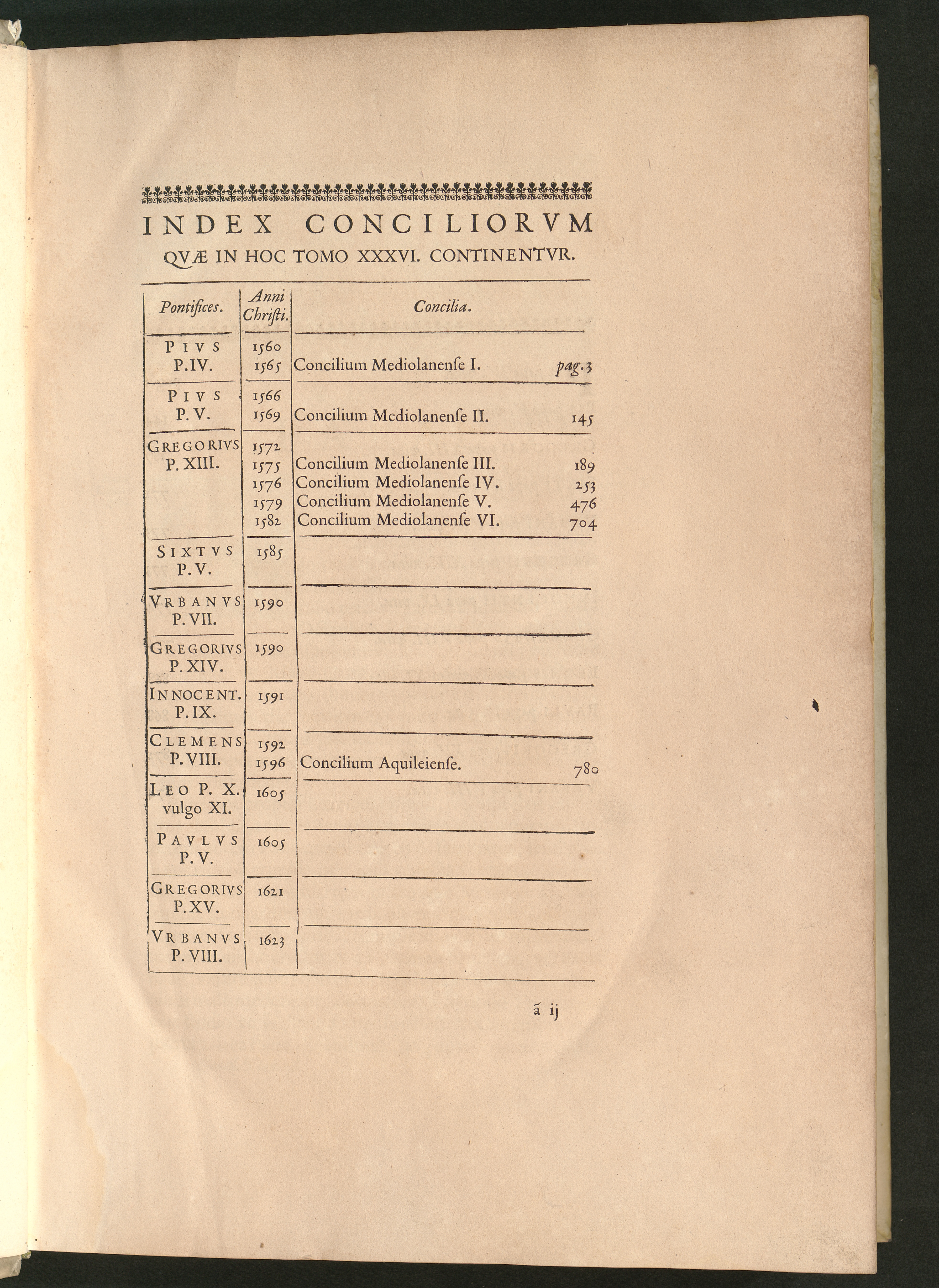Index Conciliorvm Qvæ In Hoc Tomo XXXVI. Continentvr.