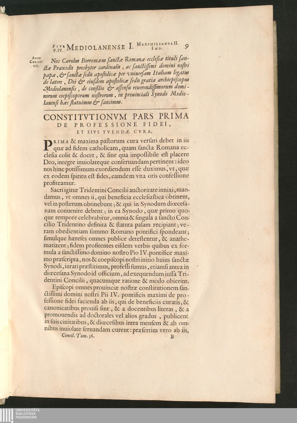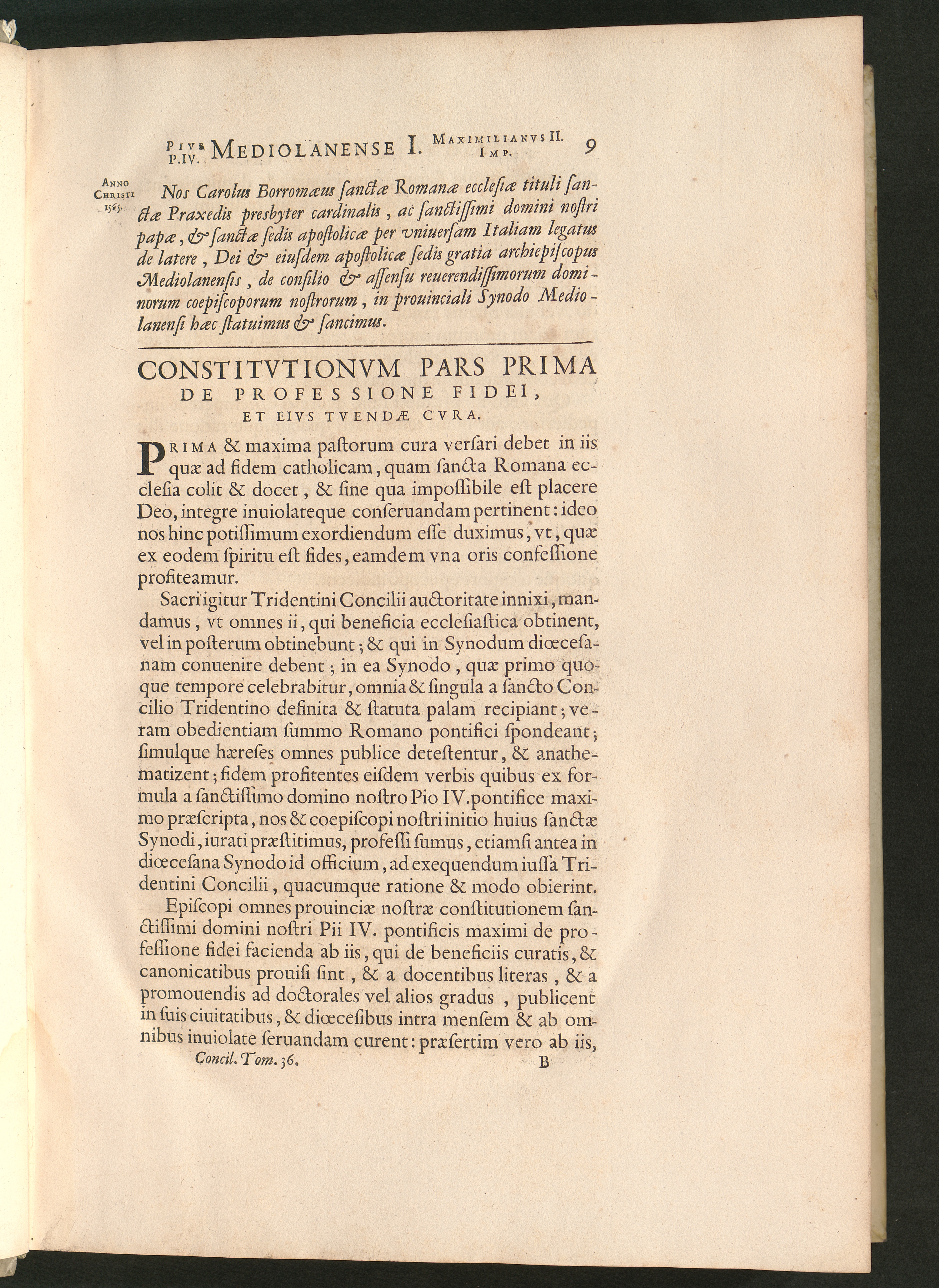 Constitvtionvm Pars Prima De Professione Fidei, Et Eivs Tvendæ Cvra.