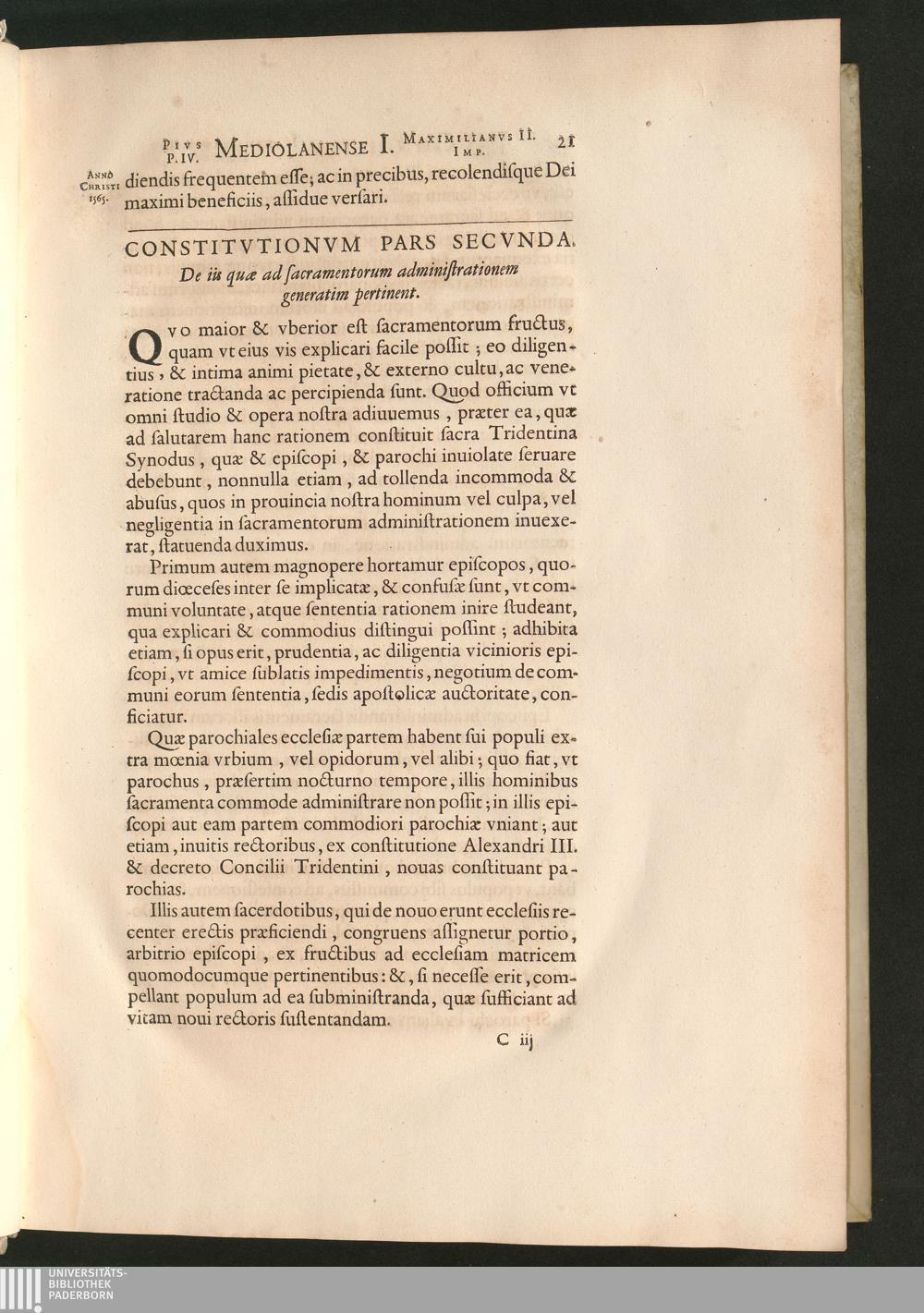 Constitvtionvm Pars Secvnda. De iis quæ ad sacramentorum administrationem generatim[...]