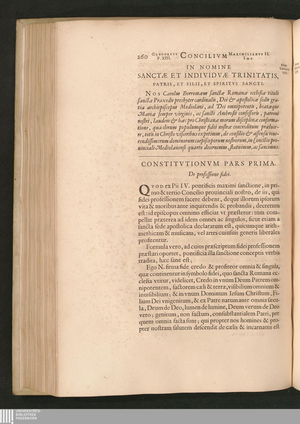 Constitvtionvm Pars Prima. De professione fidei.