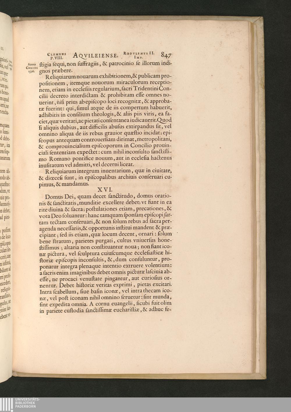 XVI. De ecclesiis, & pio in eis versa[n]di modo, altaribus, & sacristiis.