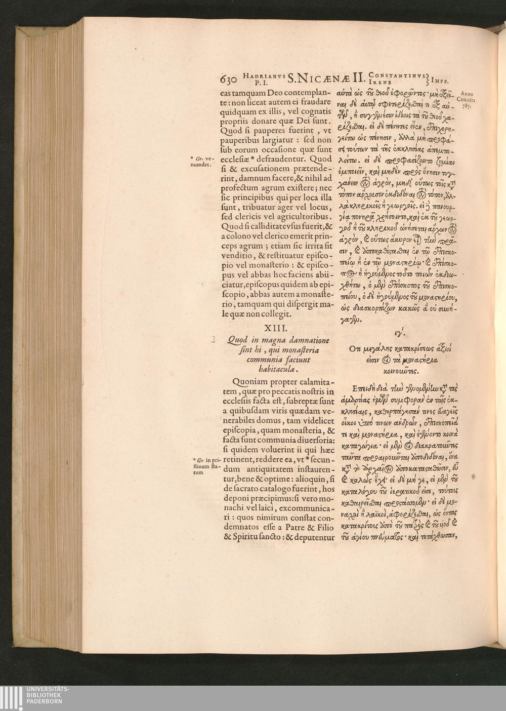 Tomvs Decimvs Nonvs (1644) Synodvs Nicæna II. Generalis. Sub Hadriano papa I. anno DCCLXXXVII.