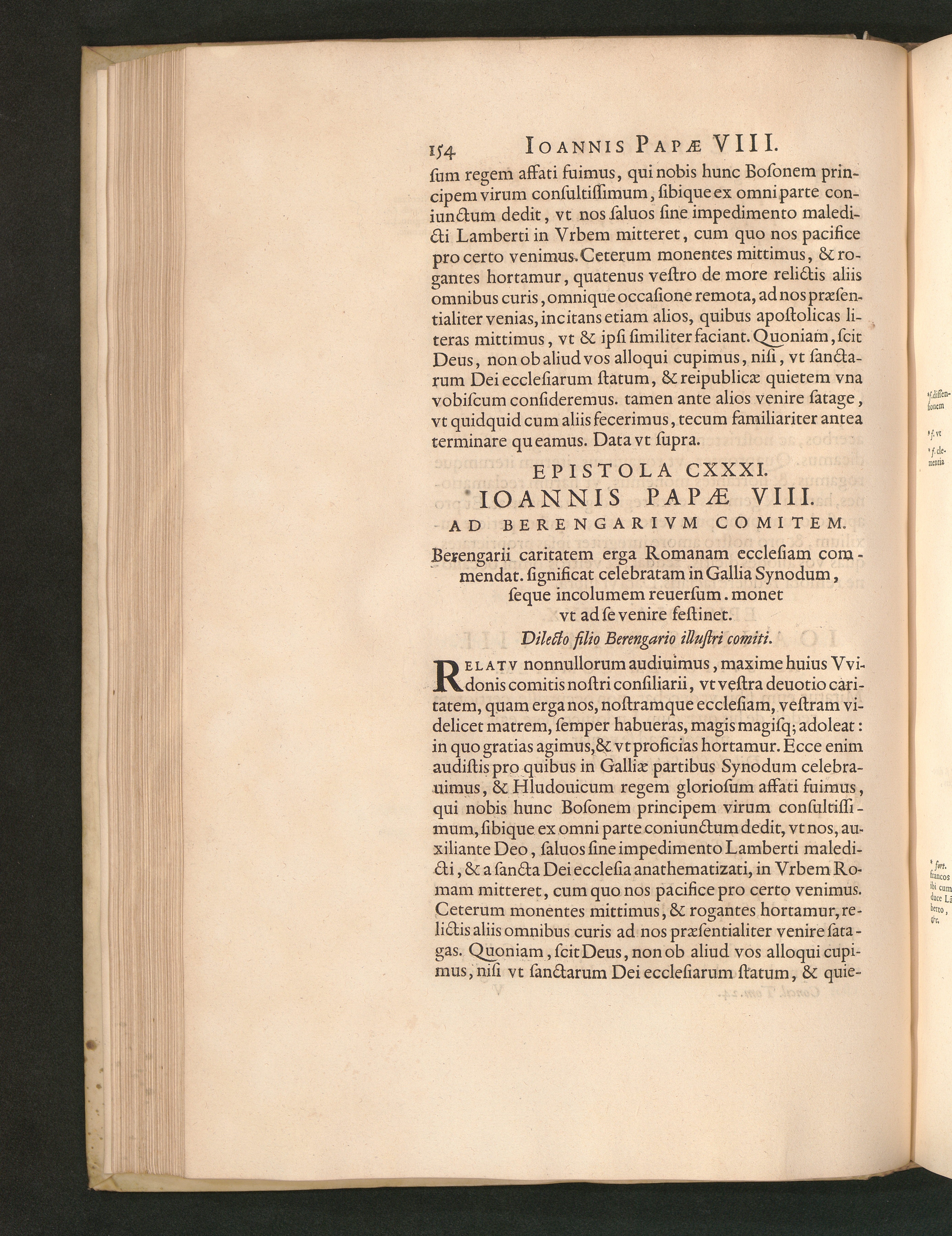 Epistola CXXXI. Ioannis Papae VIII. Ad Berengarivm Comitem. Berengarii caritatem[...]