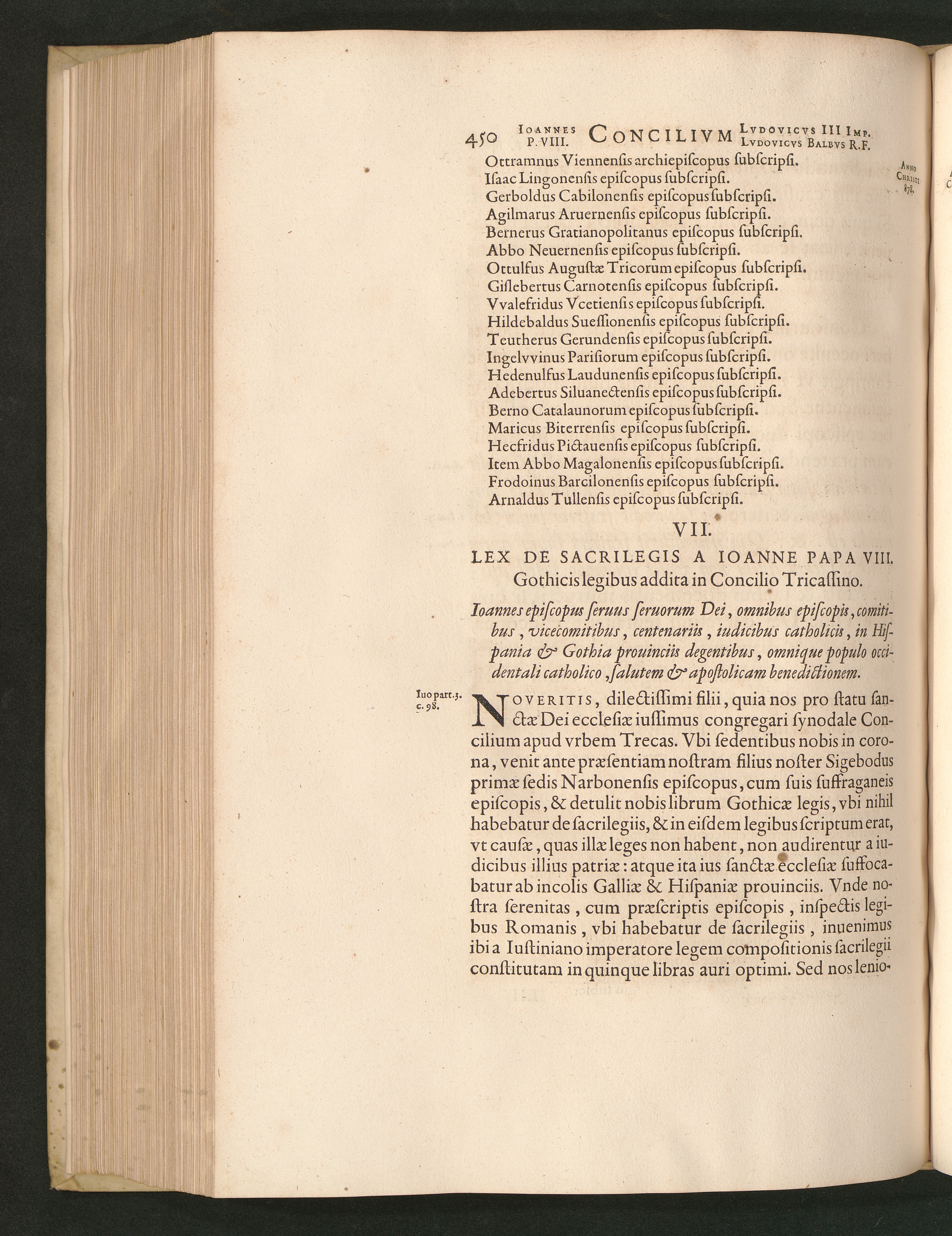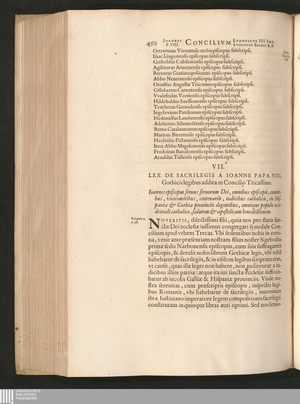 VII. Lex de sacrilegis ab Ioanne papa Gothicis legibus addita in Concilio Tricas[...]