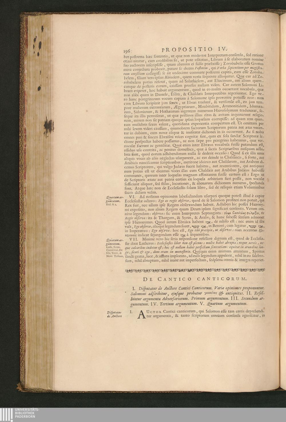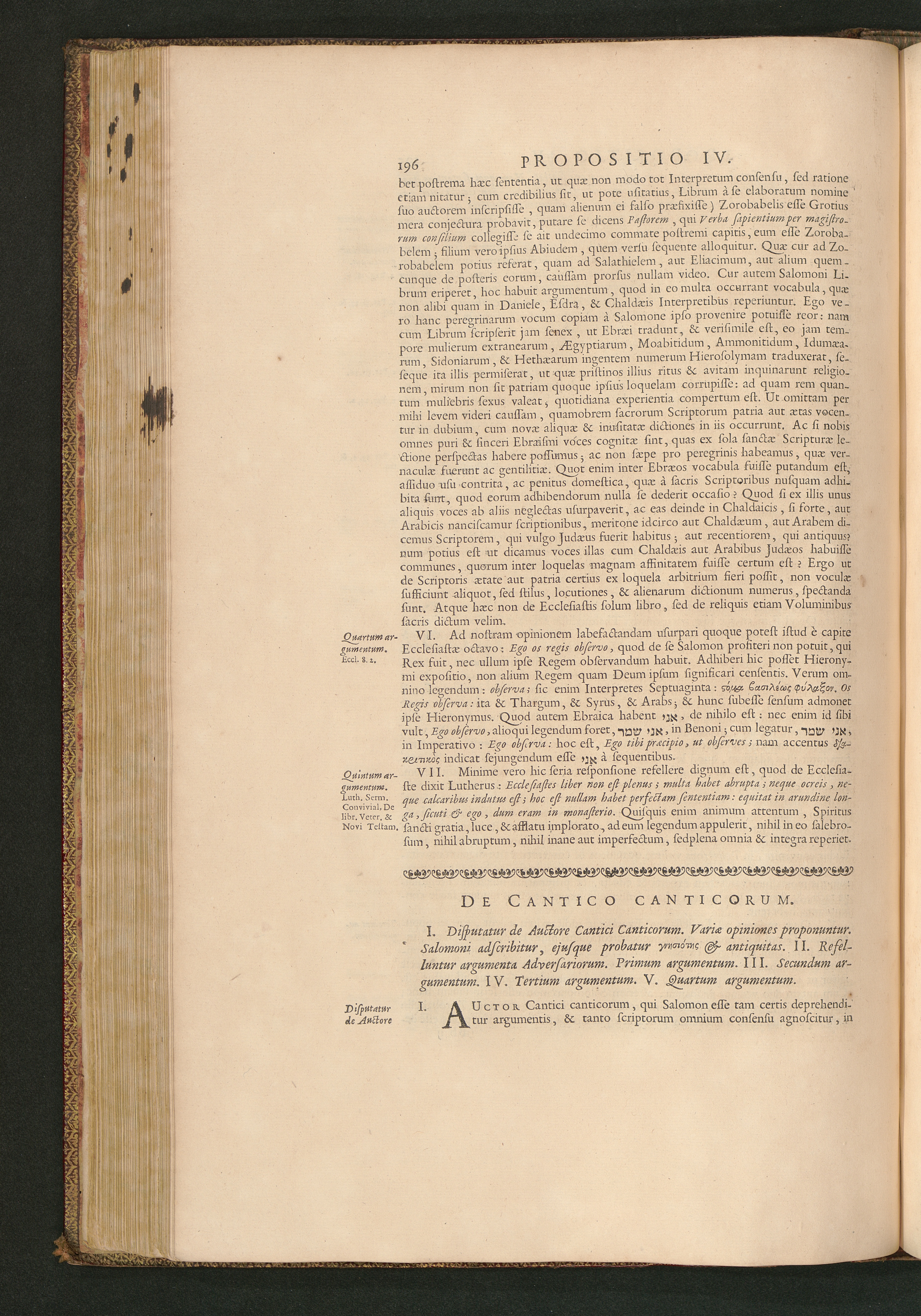 I. Disputatur de Auctore Cantici Canticorum. Variae opiniones proponuntur. Salomoni[...]