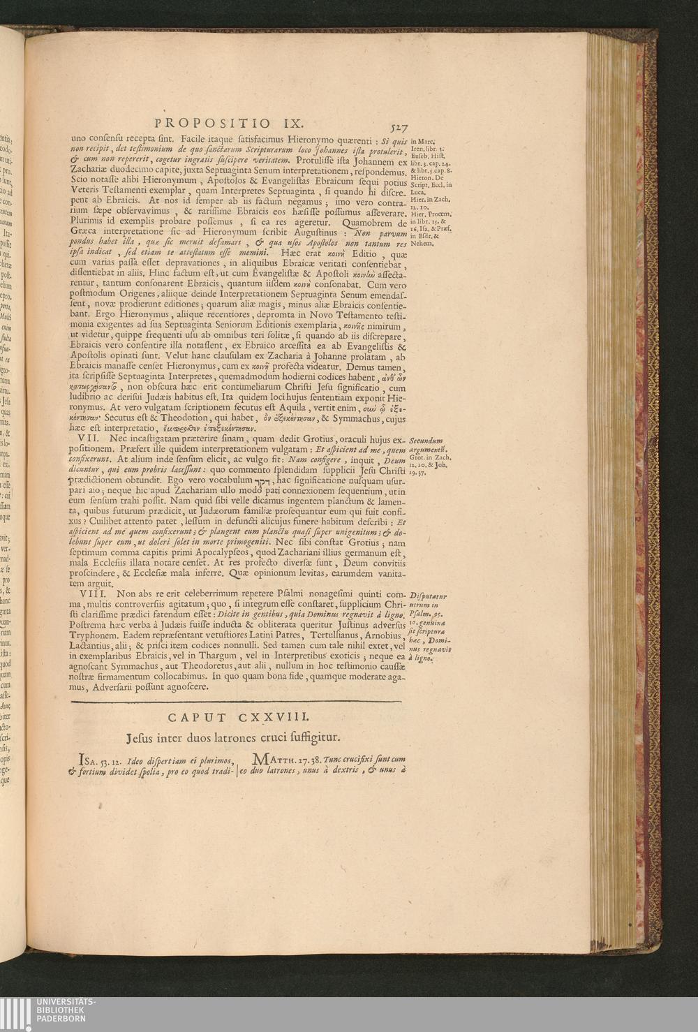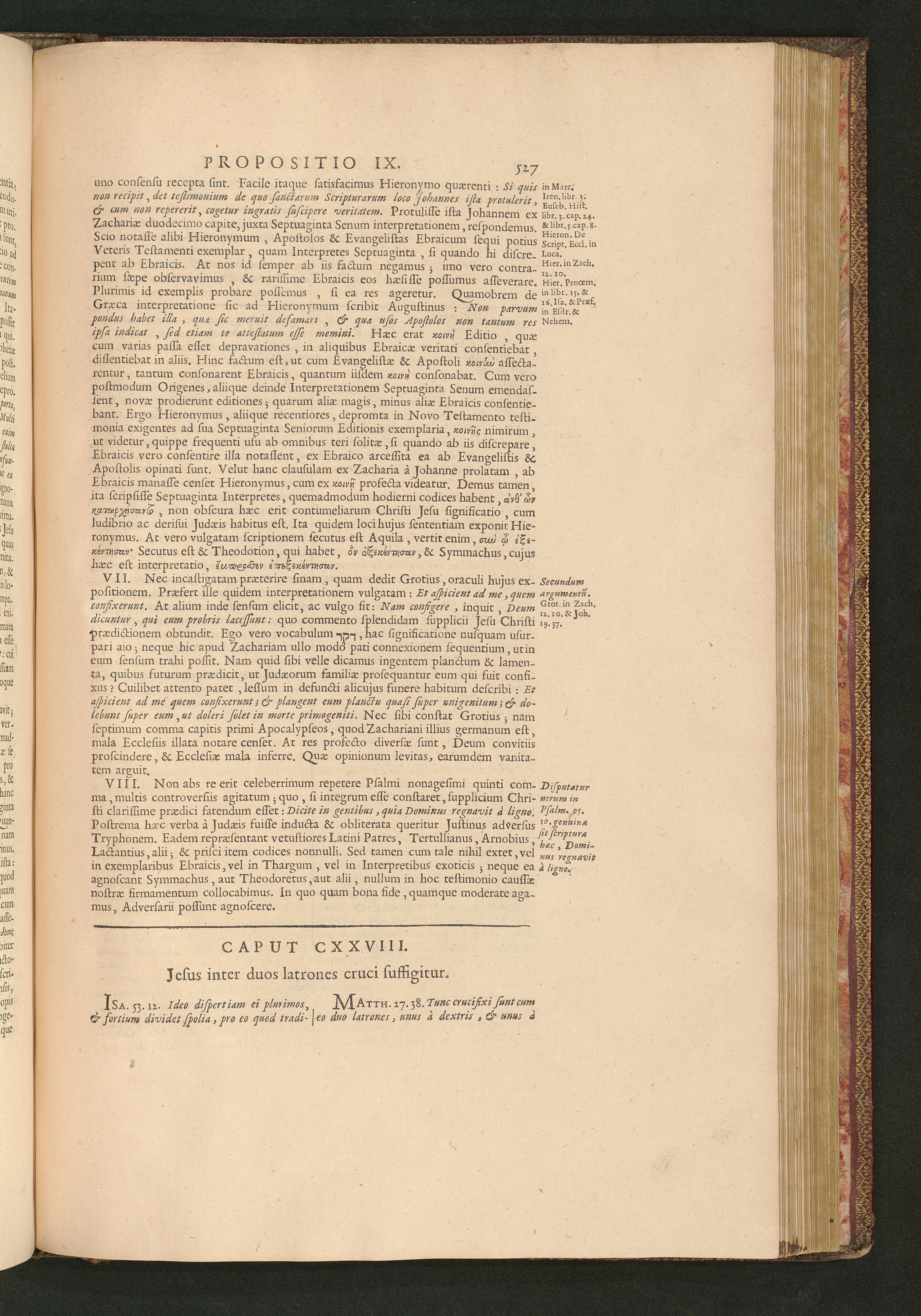 Caput centesimum vigesimum octavum. Jesus inter latrones cruci suffigitur.