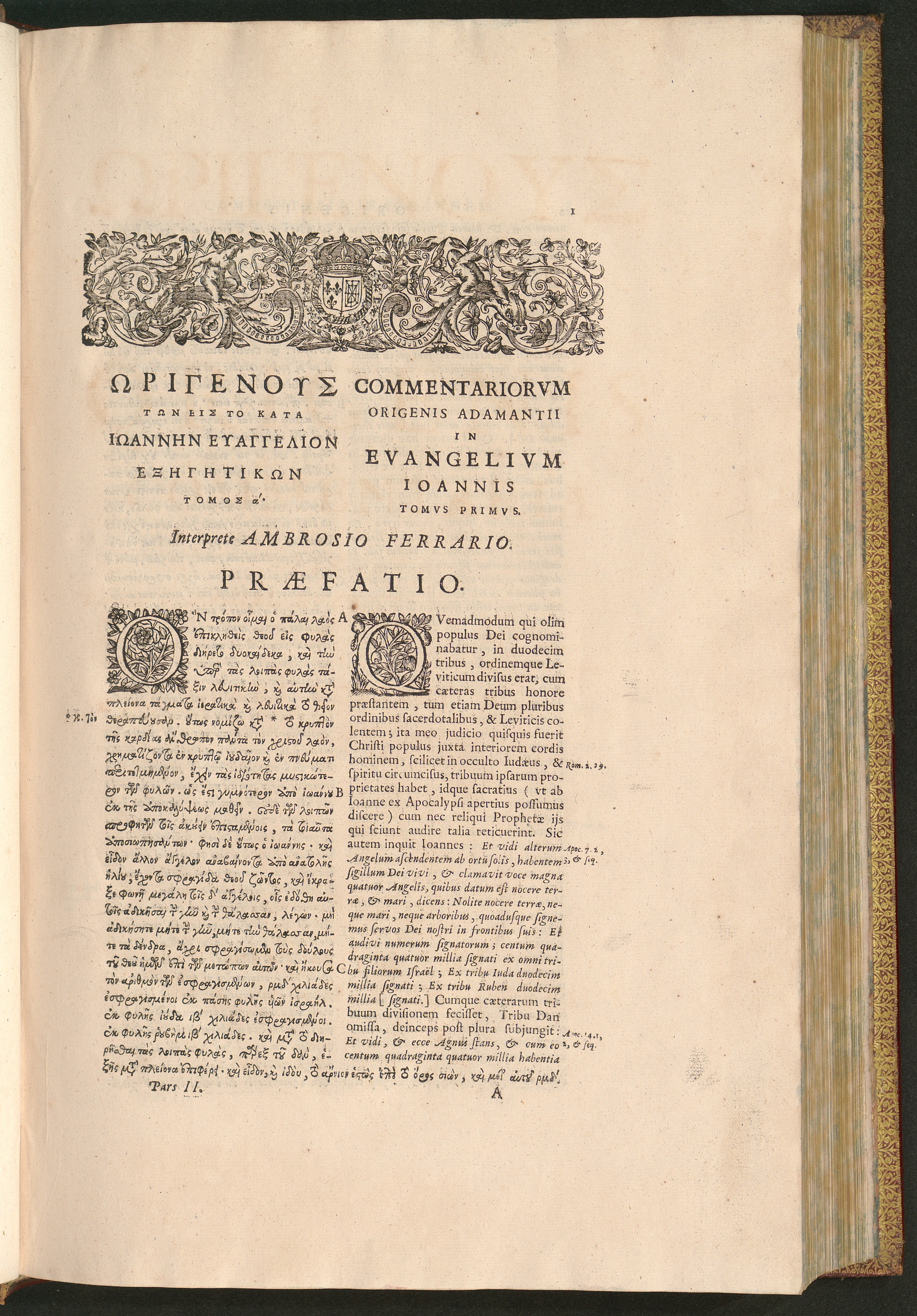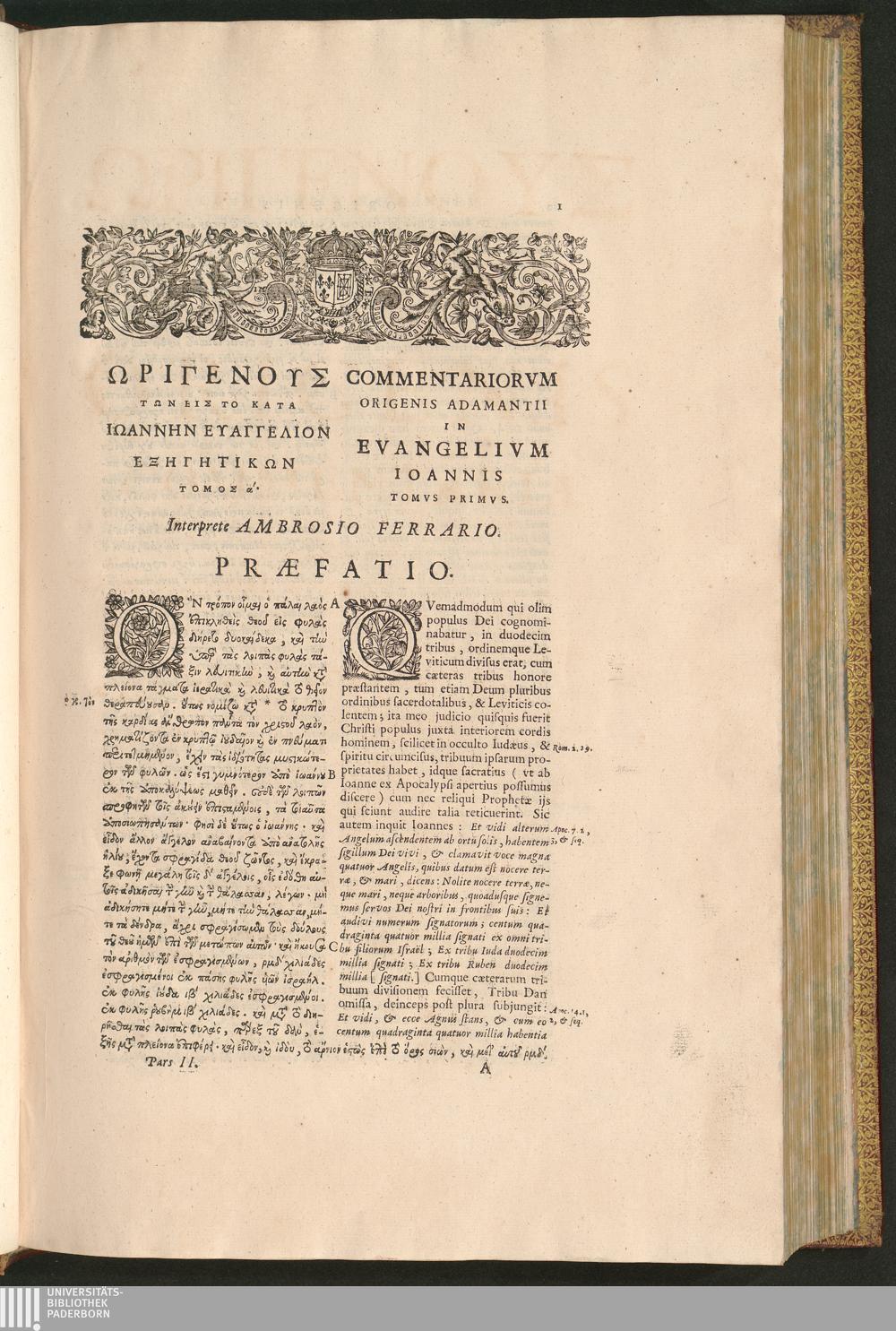 Ōrigenus Tōn Eis To Kata Iōannēn Eyaggelion Exēgētikōn Tomos 1. Commentariorvm Origenis[...]