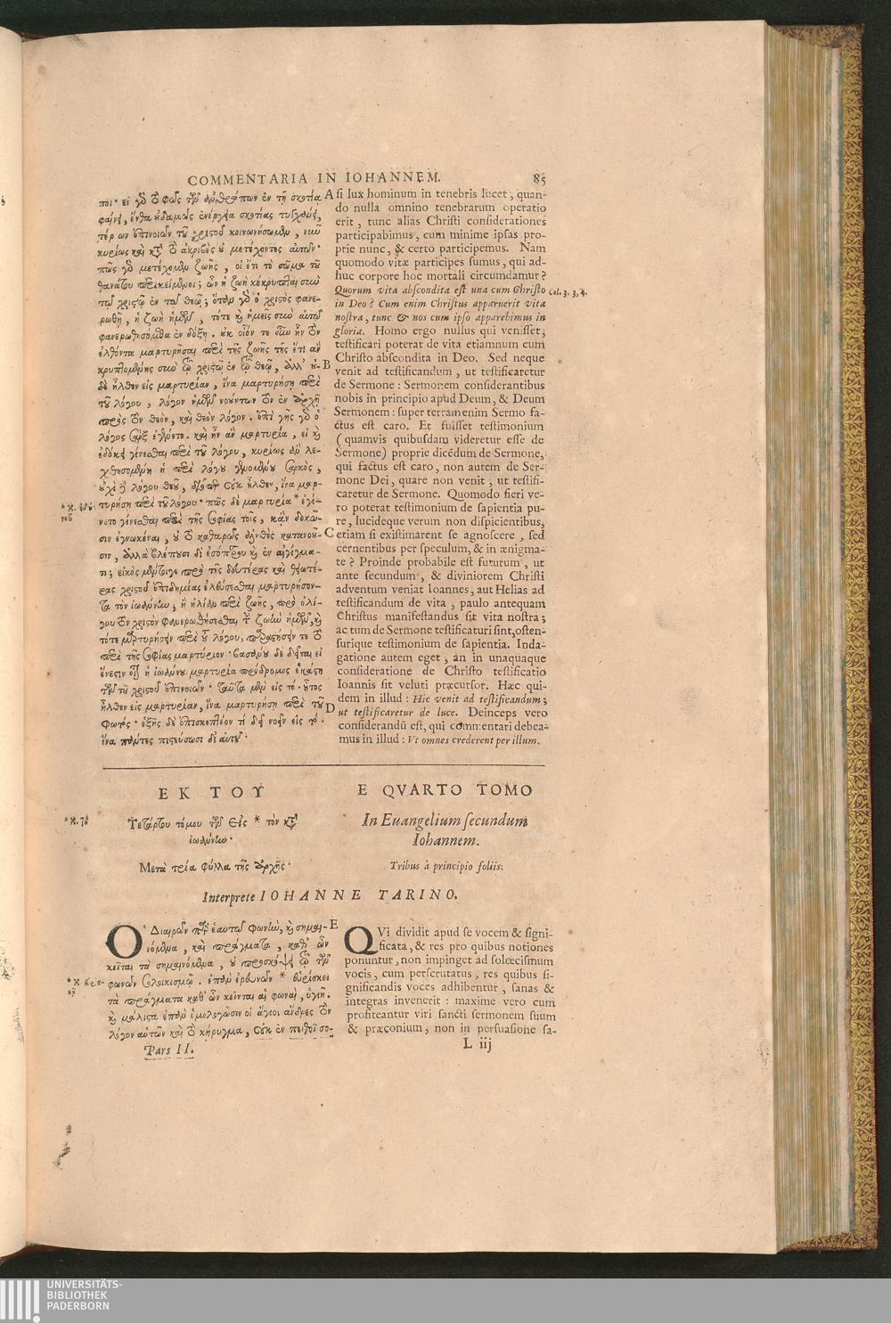 Ek Tu [...] E Qvarto Tomo In Euangelium secundum Iohannem.