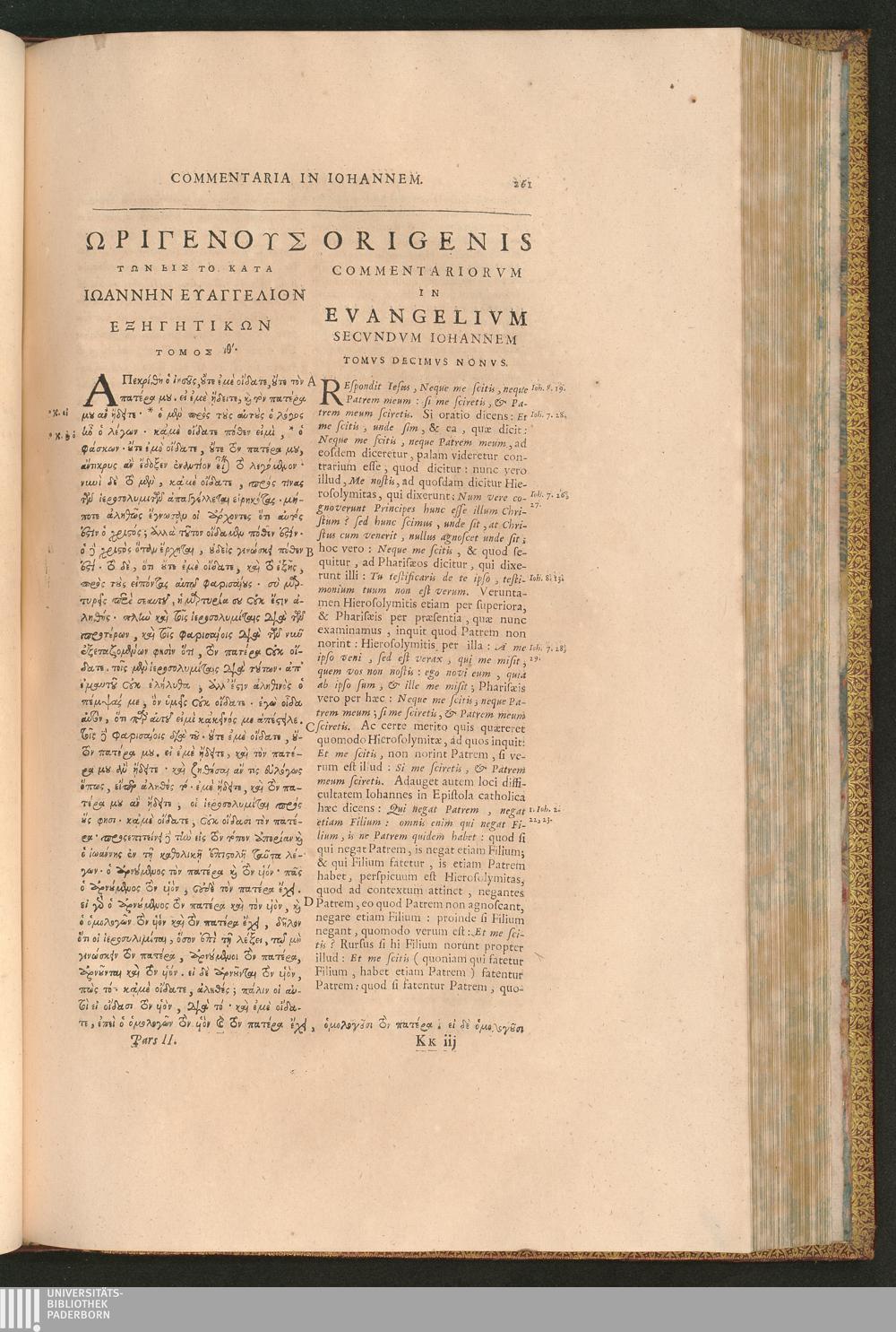 Ōrigenus Tōn Eis To Kata Iōannēn Eyaggelion Exēgētikōn Tomos 19. Origenis Commentariorvm[...]