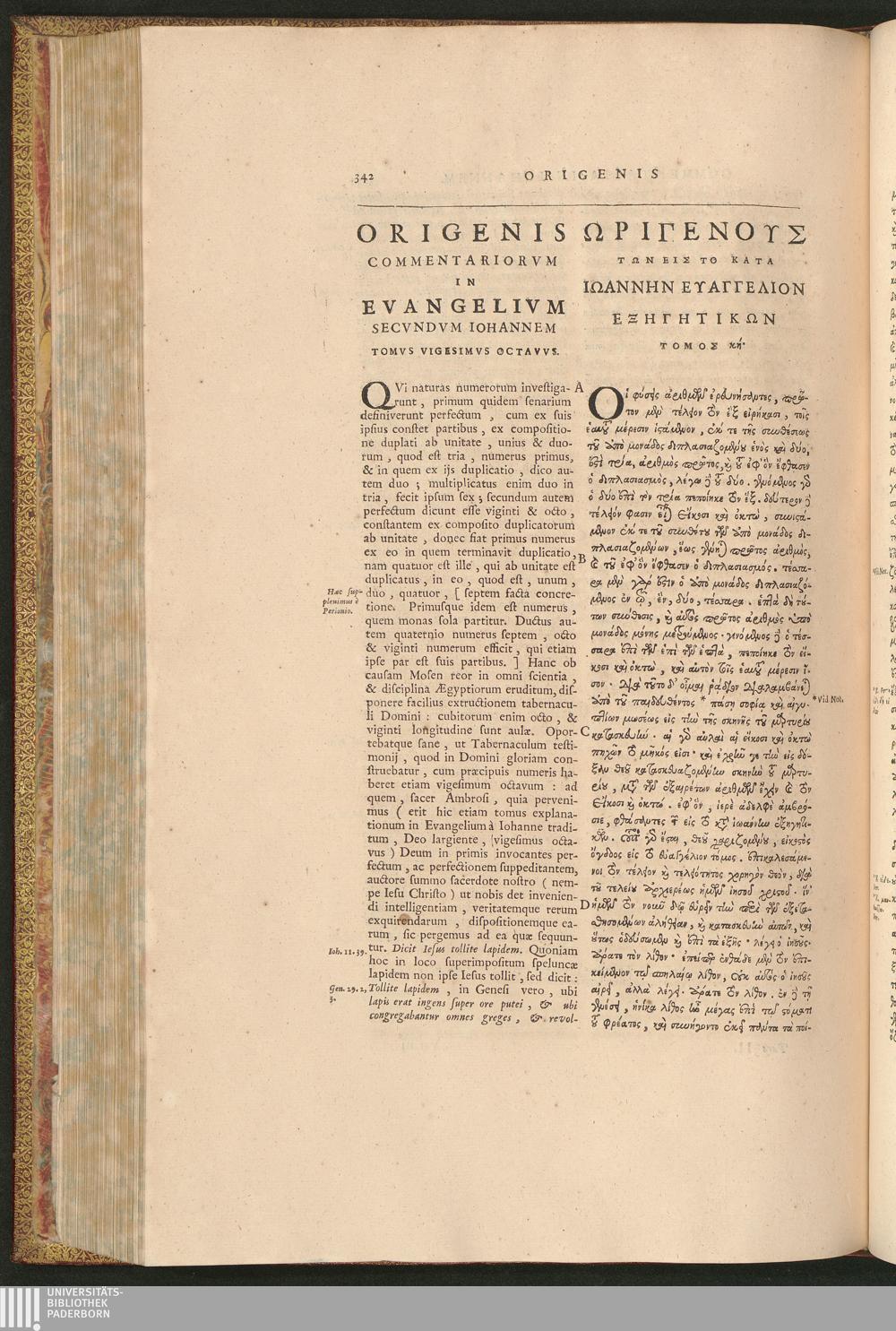 Origenis Commentariorvm In Evangelivm Secvndvm Iohannem Tomvs Vigesimvsoctavvs. Ōrigenus[...]