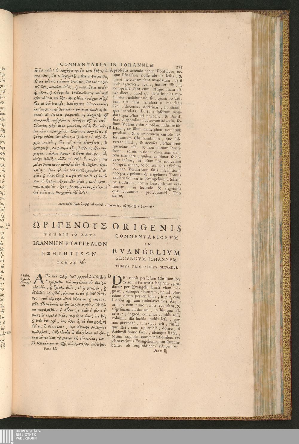 Ōrigenus Tōn Eis To Kata Iōannēn Eyaggelion Exēgētikōn Tomos 32. Origenis Commentariorvm[...]