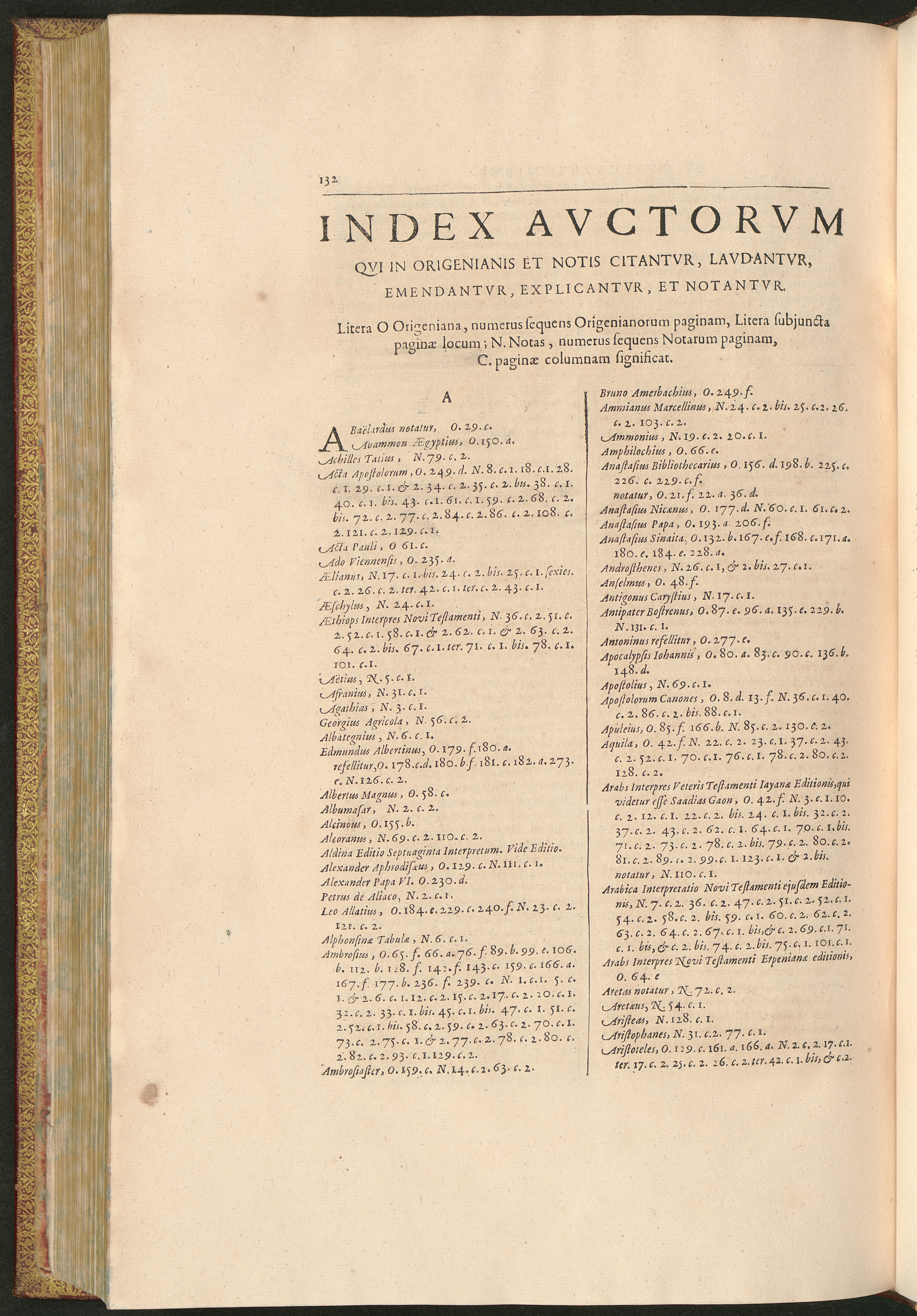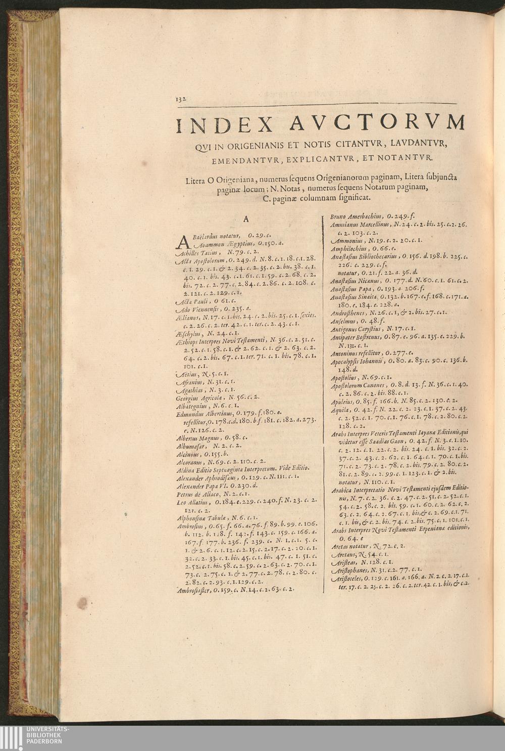 Index Avctorvm Qvi In Origenianis Et Notis Citantvr, Lavdantvr, Emendantvr, Explicantvr,[...]