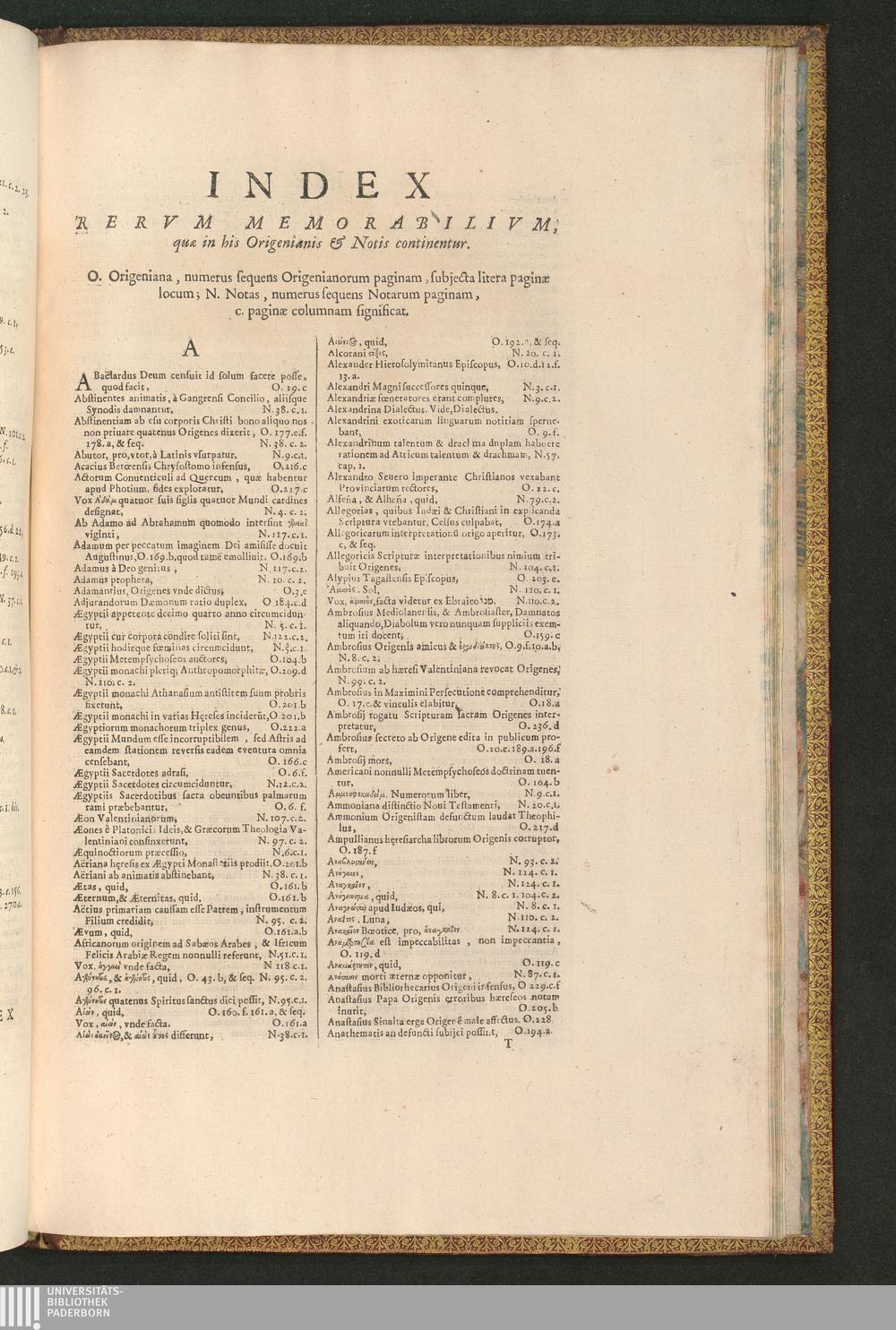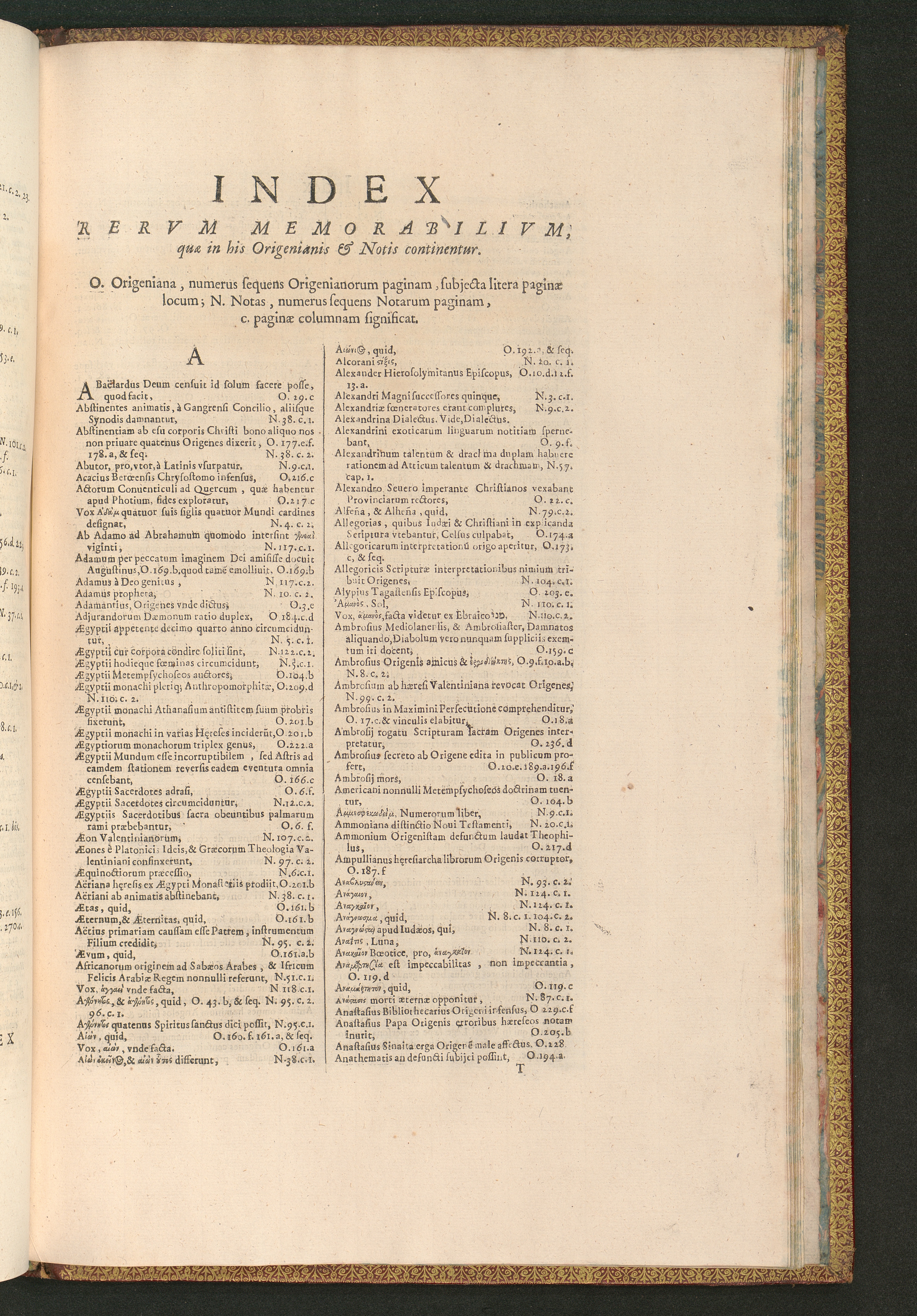 Index Rervm Memorabilivm, quae in his Origenianis & Notis continentur.