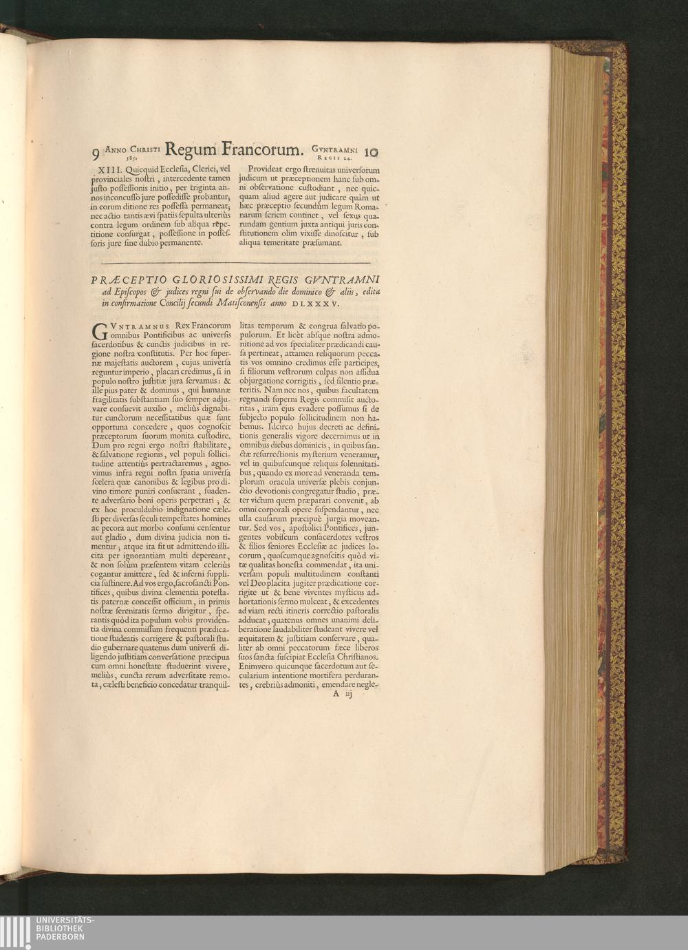 Praeceptio gloriosißimi Regis Guntramni ad Episcopos & judices regni sui de observando[...]