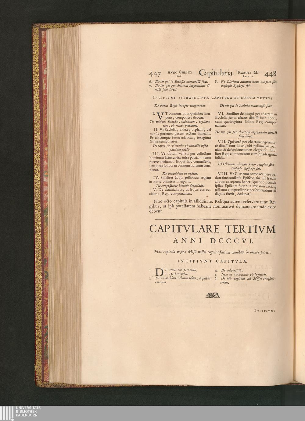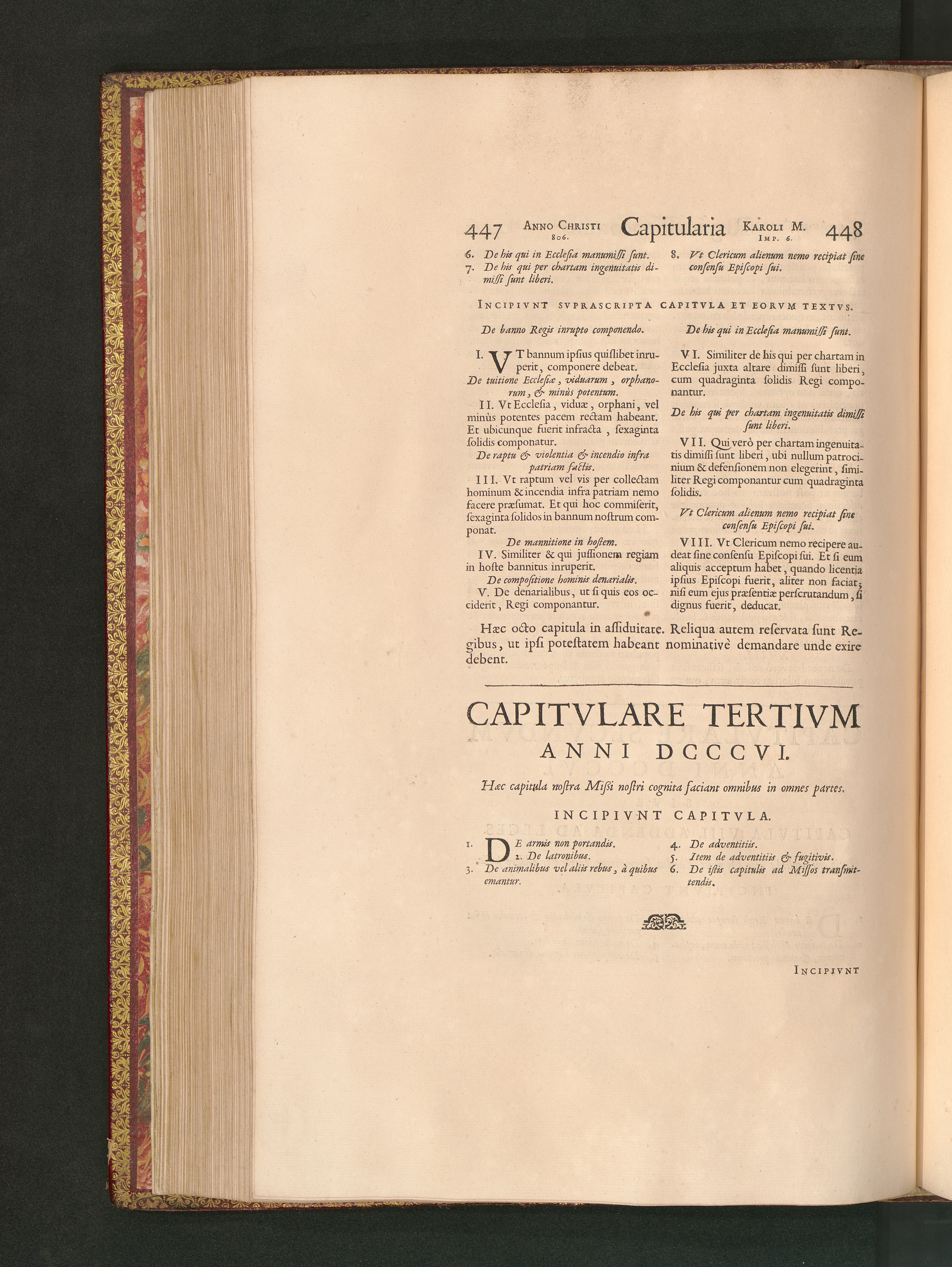 Capitulare tertium anni DCCCVI. sive capitula quae Mißi cognita facere debent in[...]