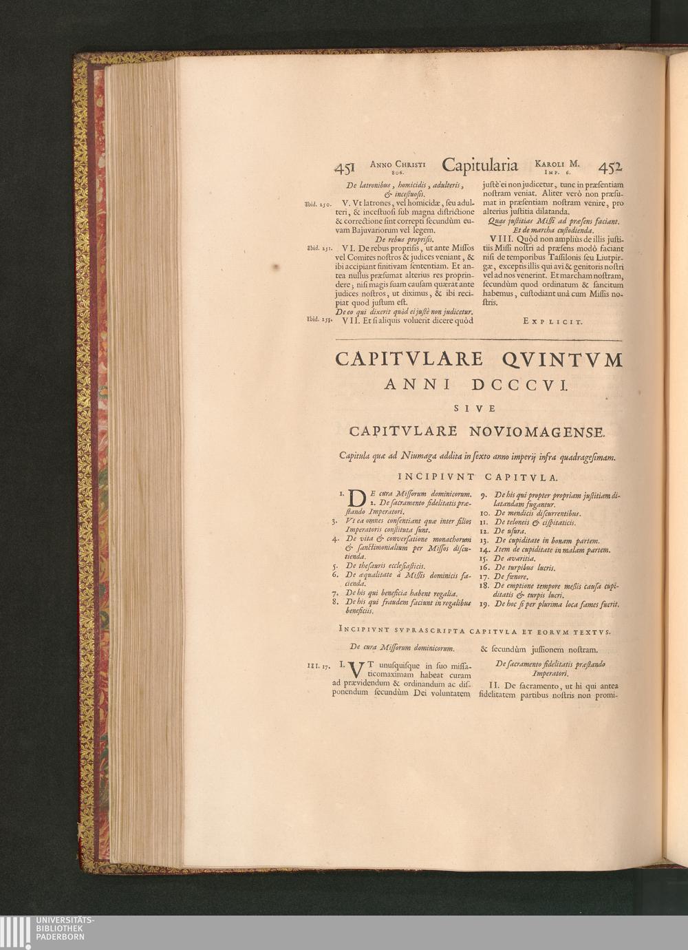 Capitulare quintum anni DCCCVI. sive capitula quae ad Niumaga addita in anno sexto[...]
