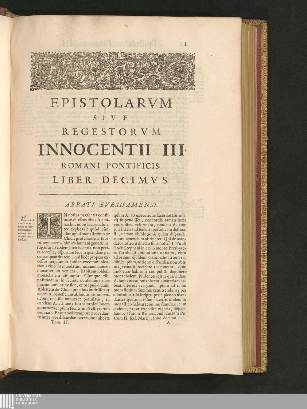 Epistolarvm Sive Regestorvm Innocentii III. Romani Pontificis. Liber Decimvs.