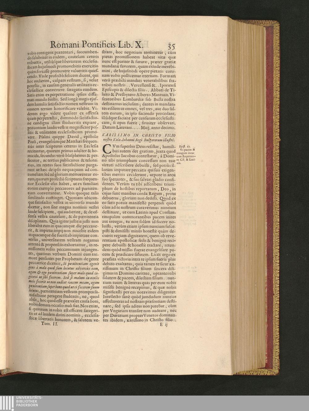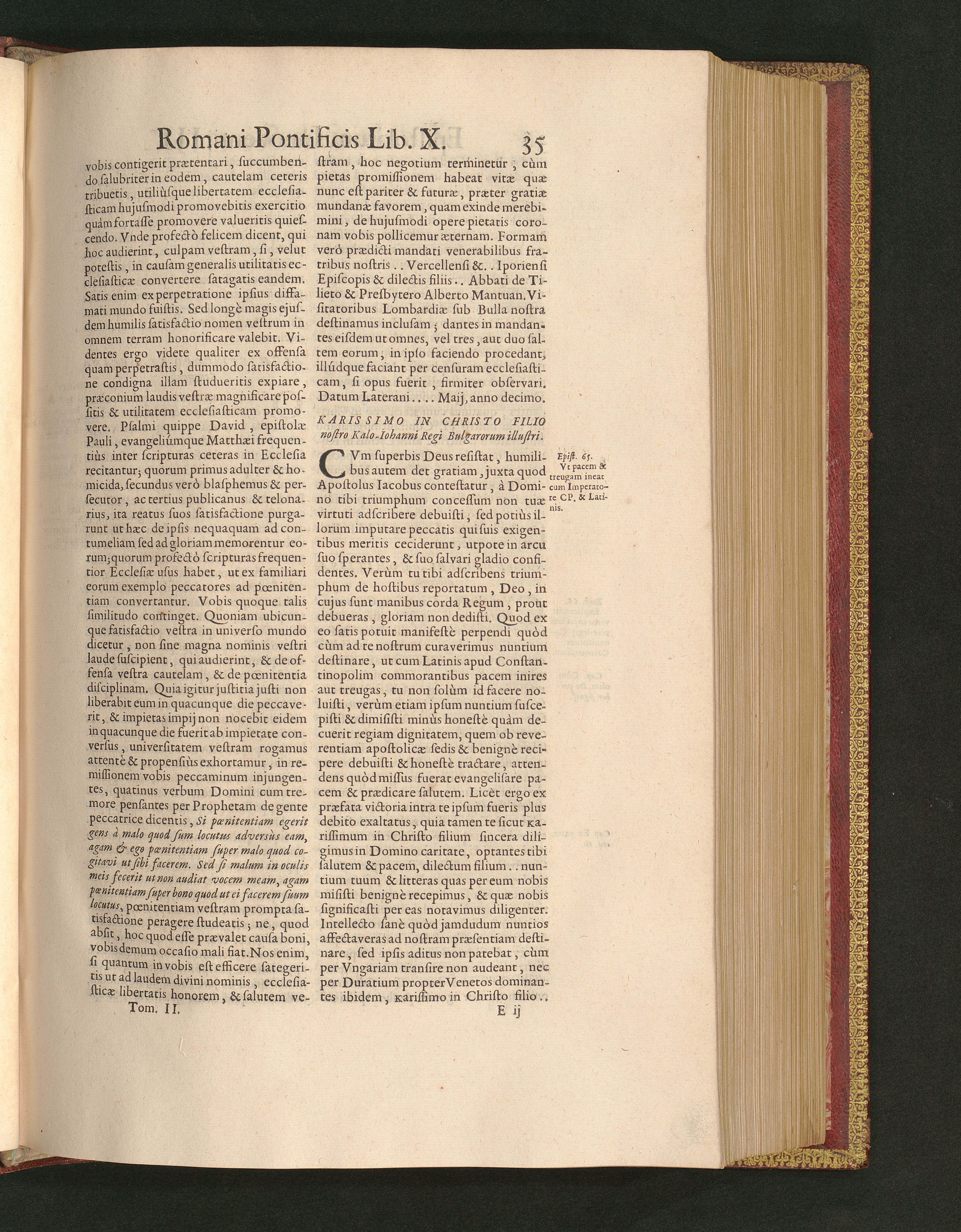 Karissimo In Christo Filio nostro Kalo-Iohanni Regi Bulgarorum illustri.