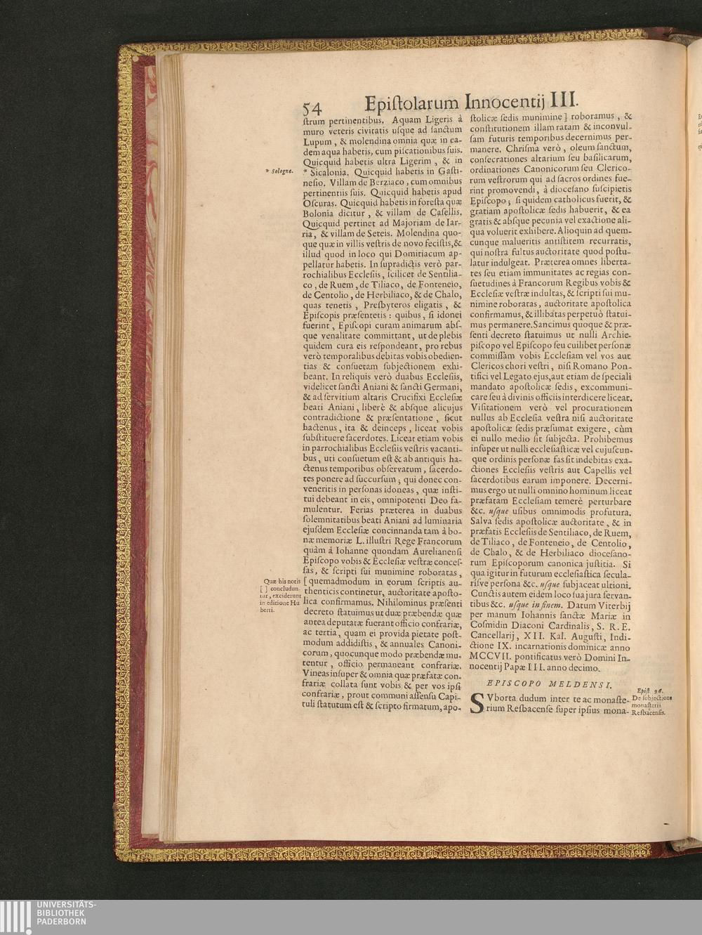 Epistolarvm Sive Regestorvm Innocentii III. Romani Pontificis. Liber Decimvs.
