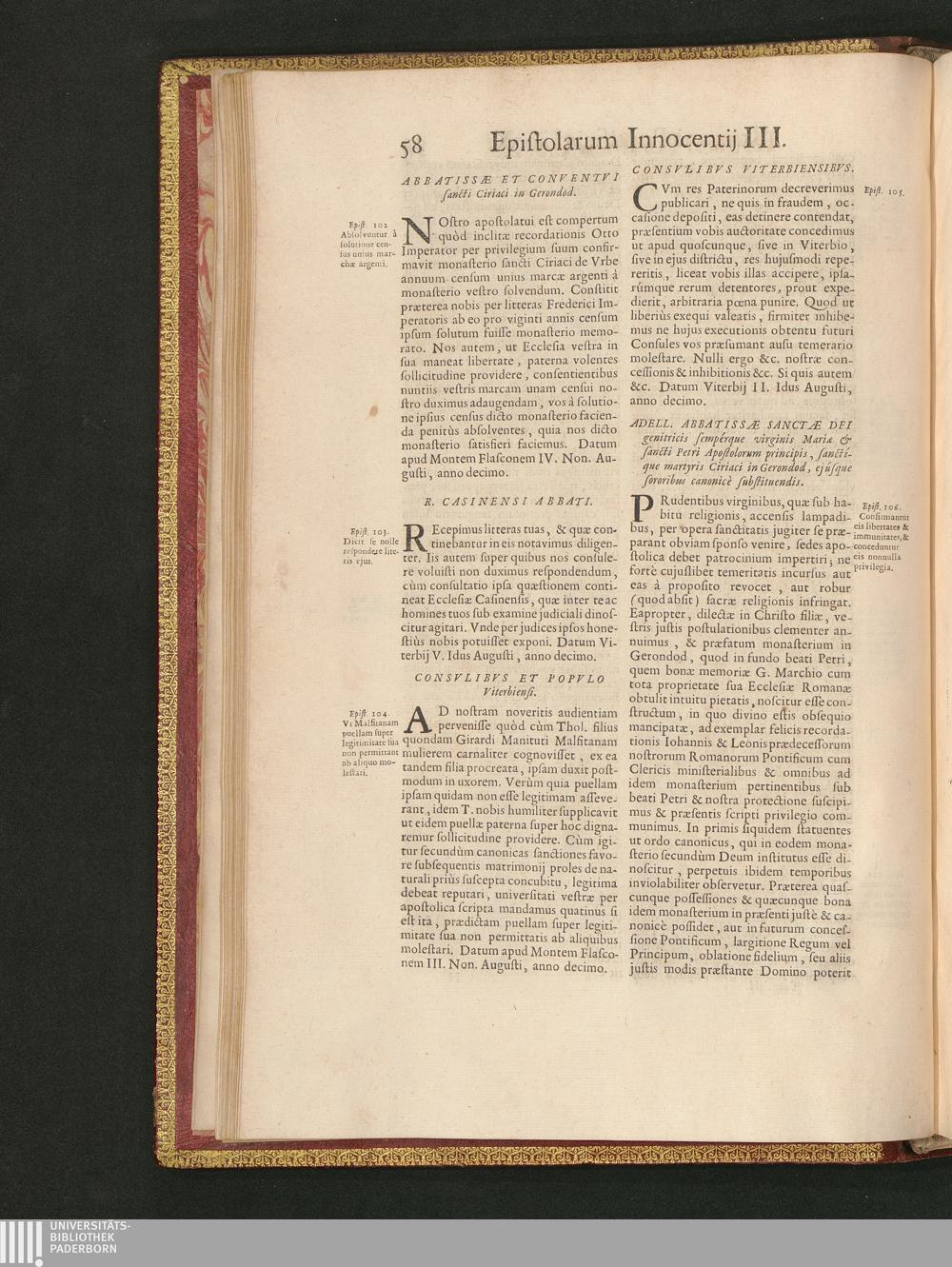 Epistolarvm Sive Regestorvm Innocentii III. Romani Pontificis. Liber Decimvs.