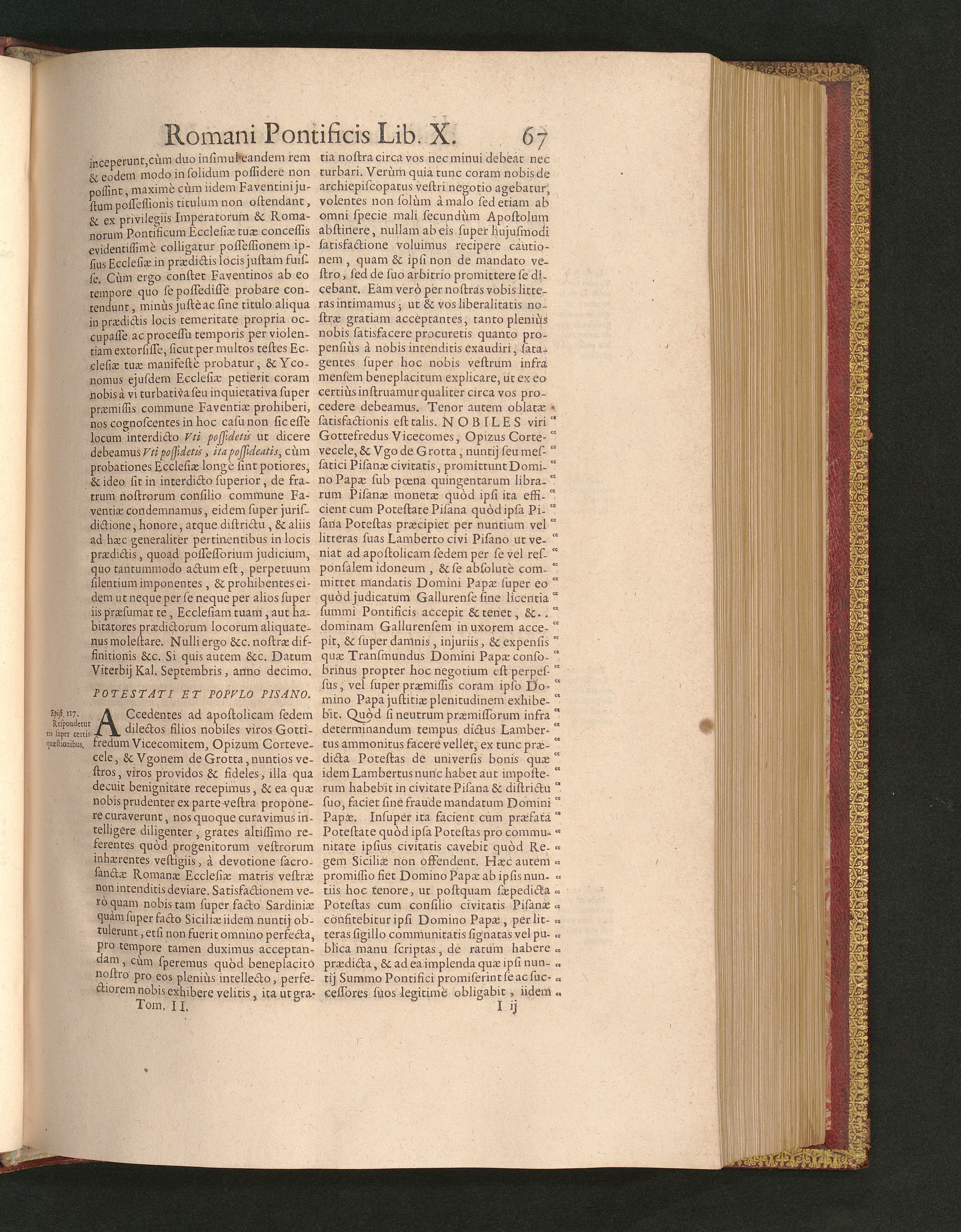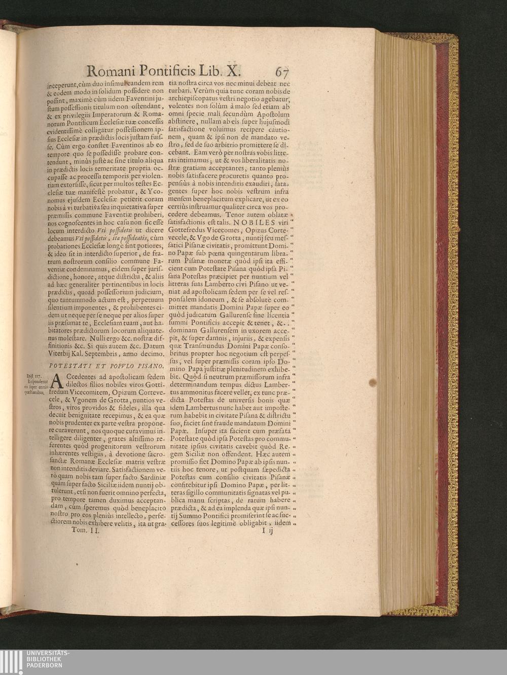 Potestati Et Popvlo Pisano.