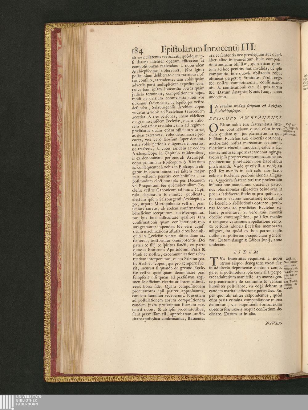 Epistolarvm Innocentii III. Romani Pontificis Libri Vndecim
