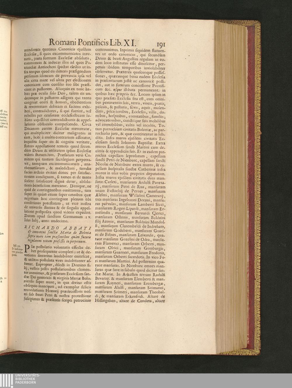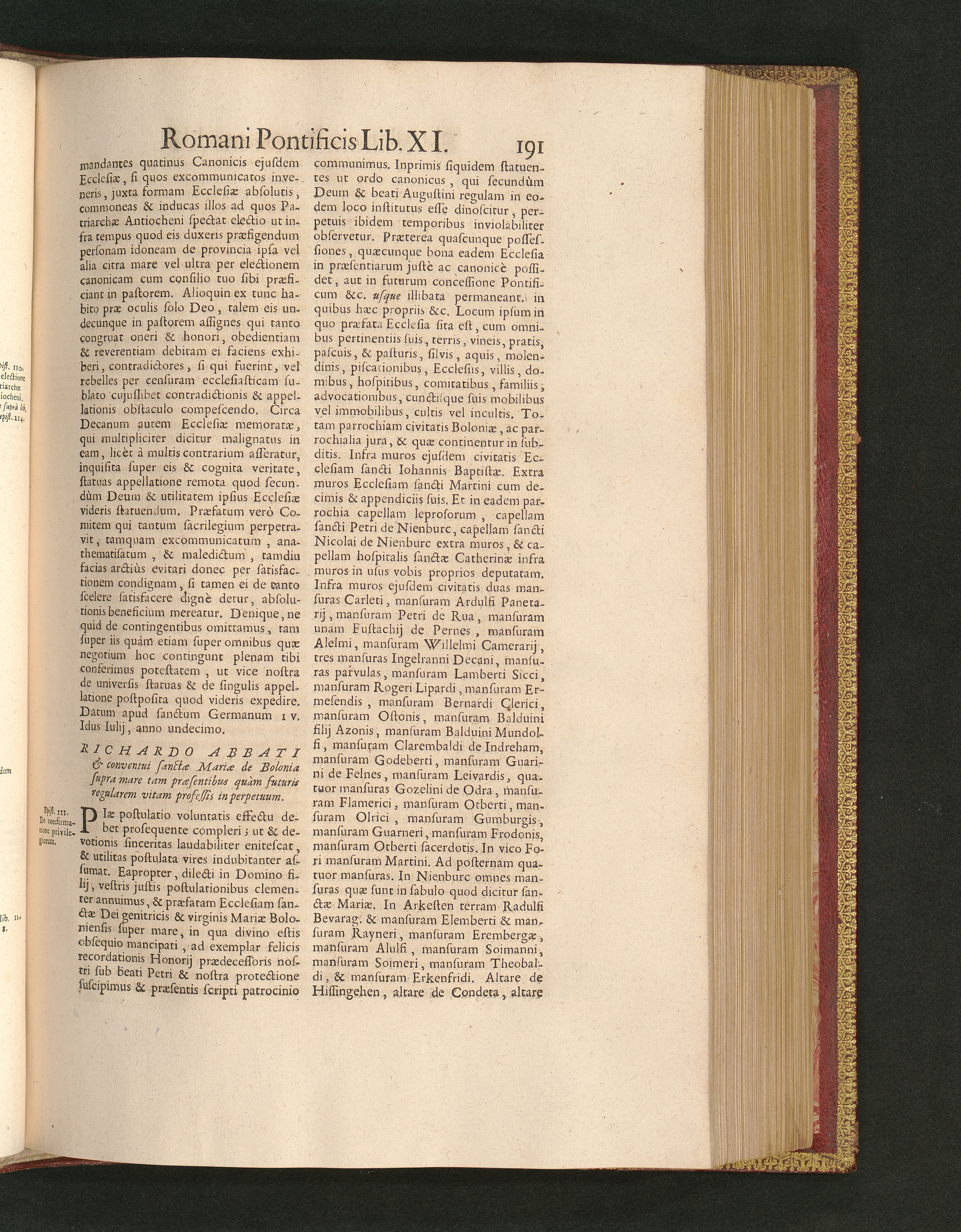 Richardo Abbati & conventui sanctæ Mariæ de Bolonia supra mare tam præsentibus quàm[...]