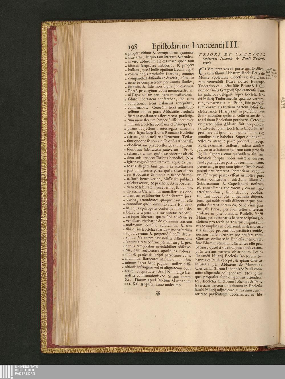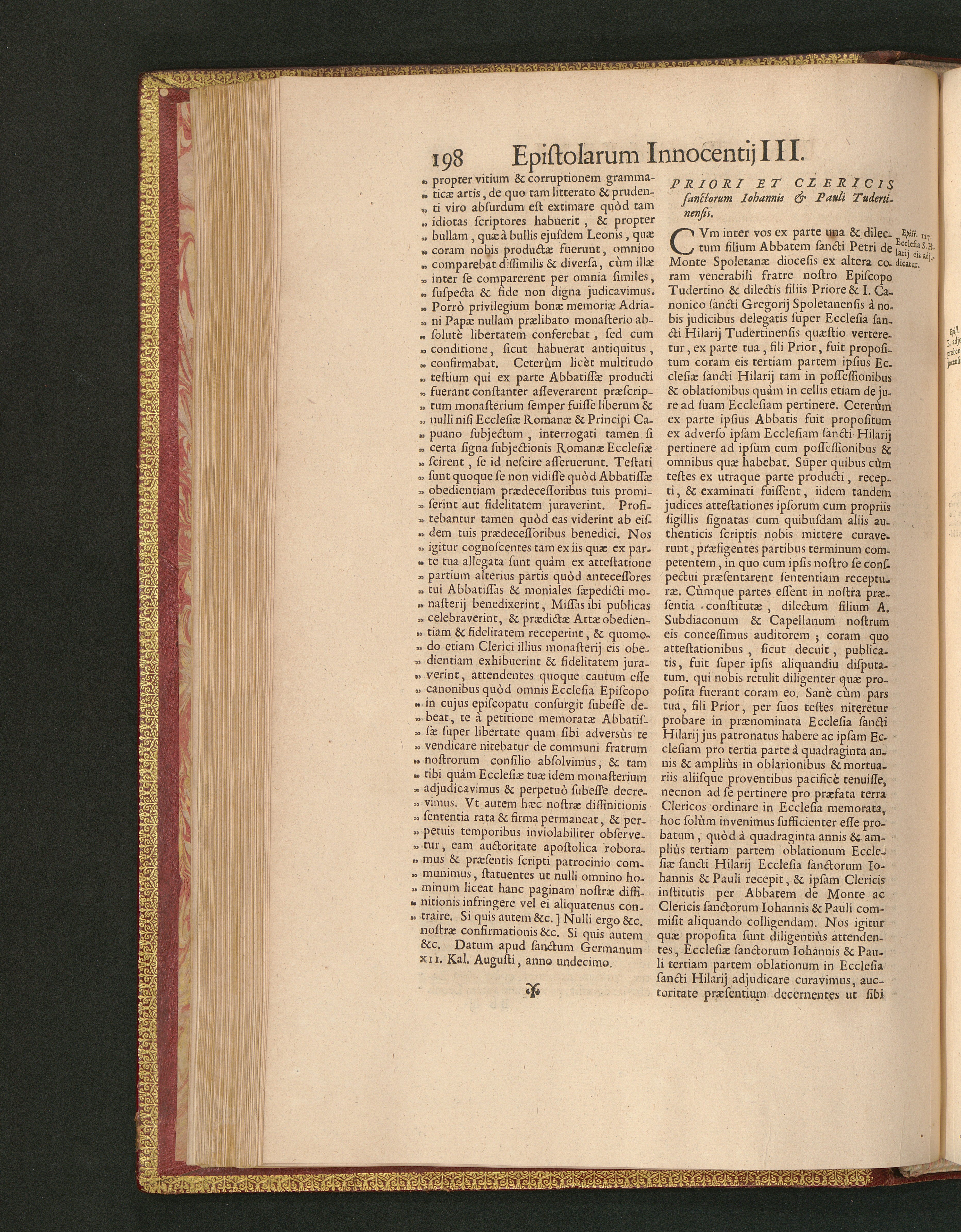 Priori Et Clericis sanctorum Iohannis & Pauli Tudertinensis.