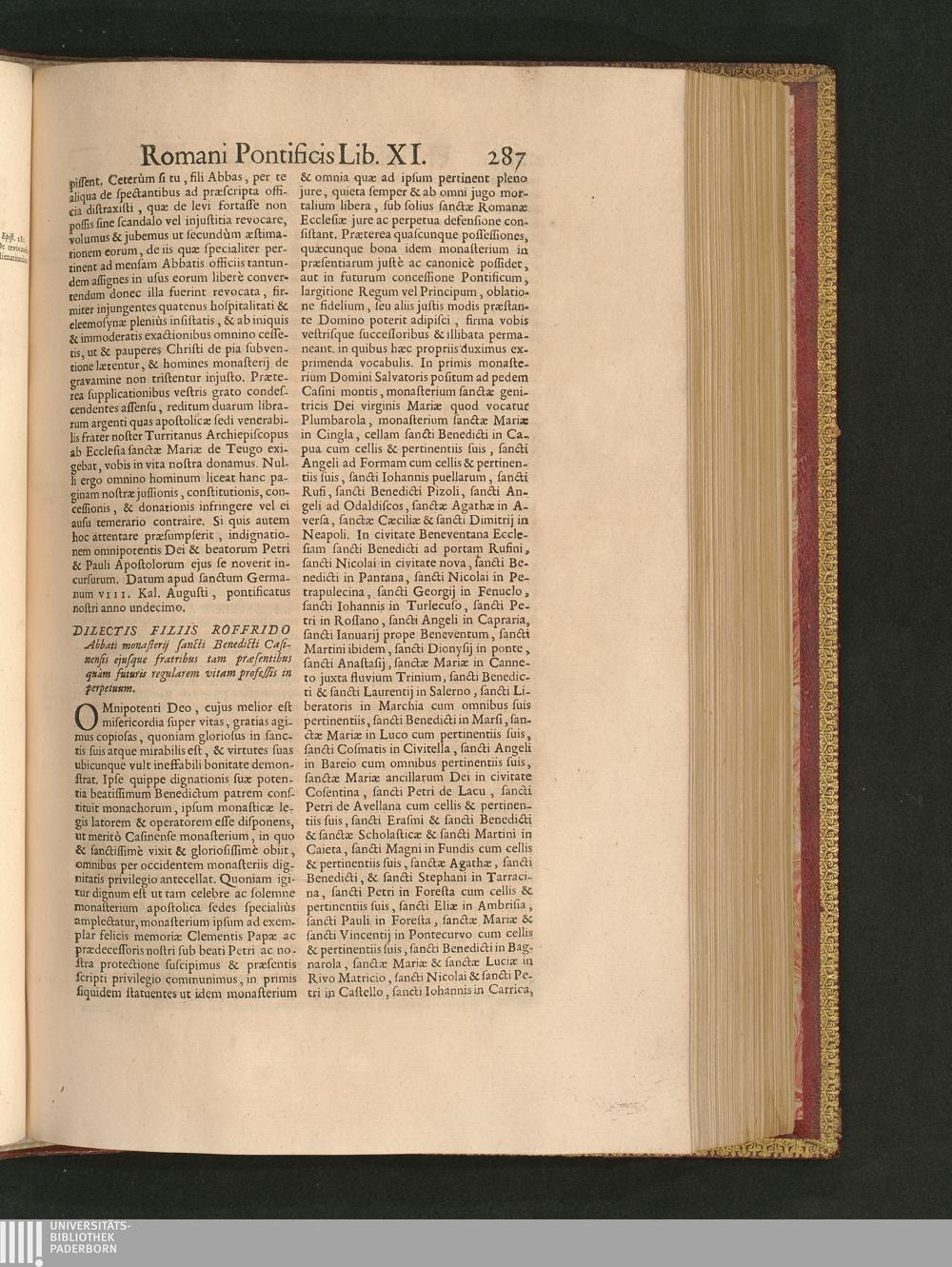 Dilectis Filiis Roffrido Abbati monasterij sancti Benedicti Casinensis ejusque fratribus[...]