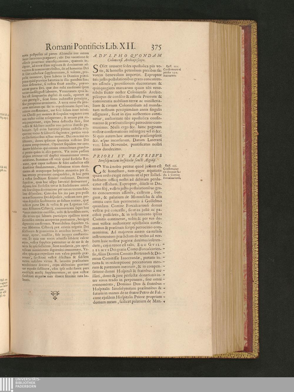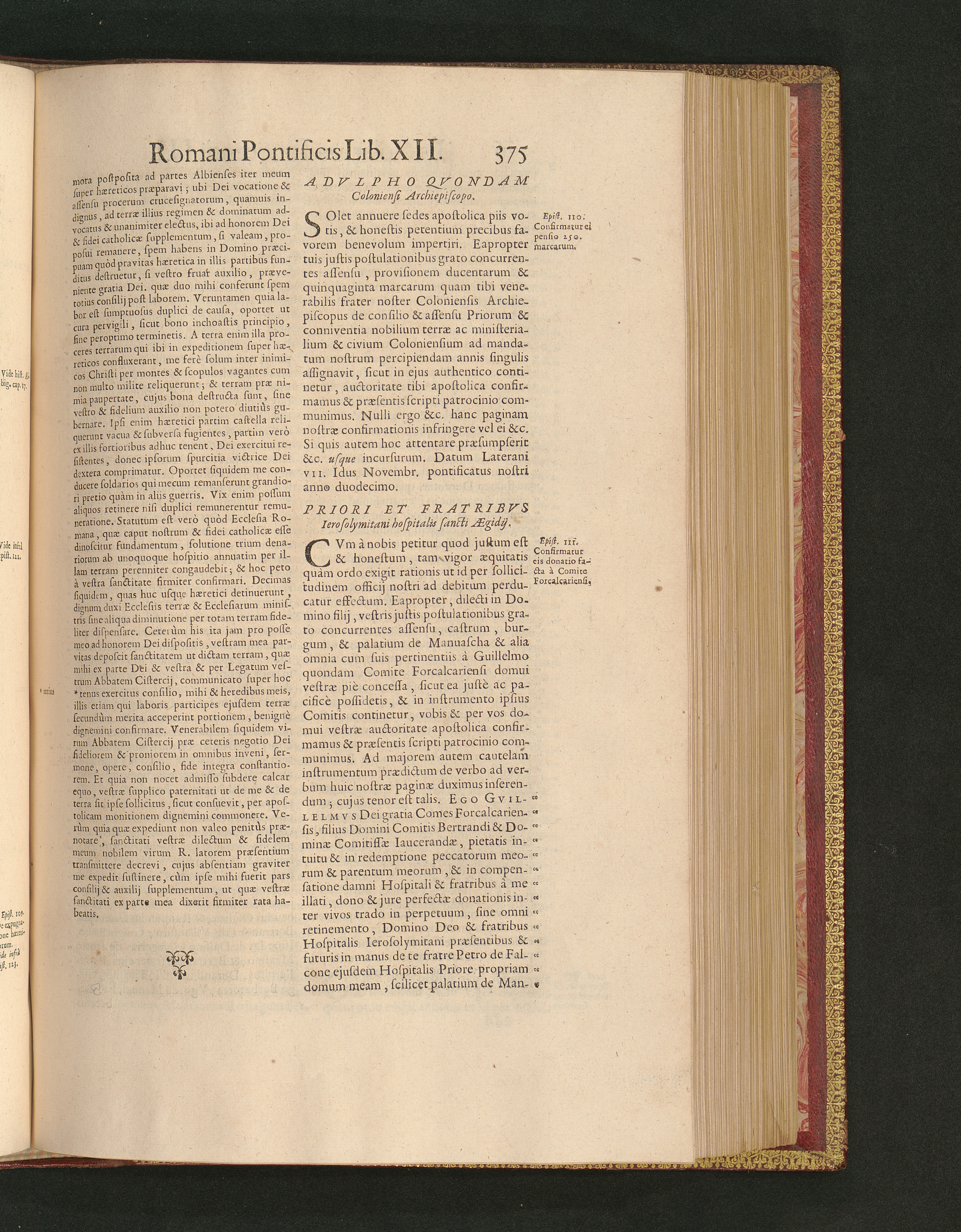 Priori Et Fratribvs Ierosolymitani hospitalis sancti Ægidij.