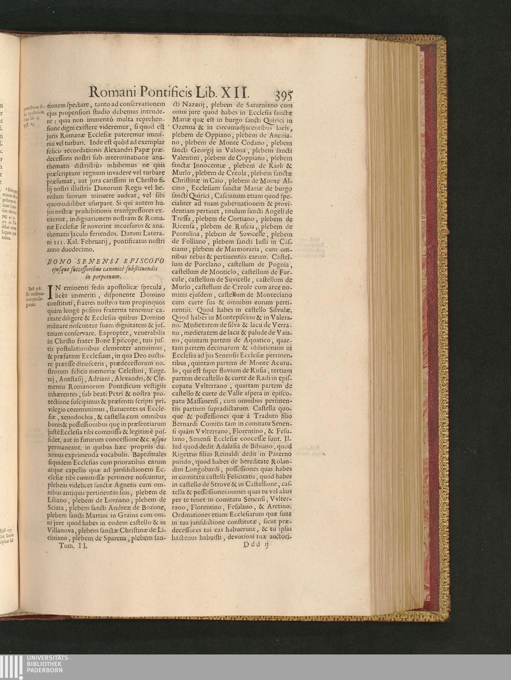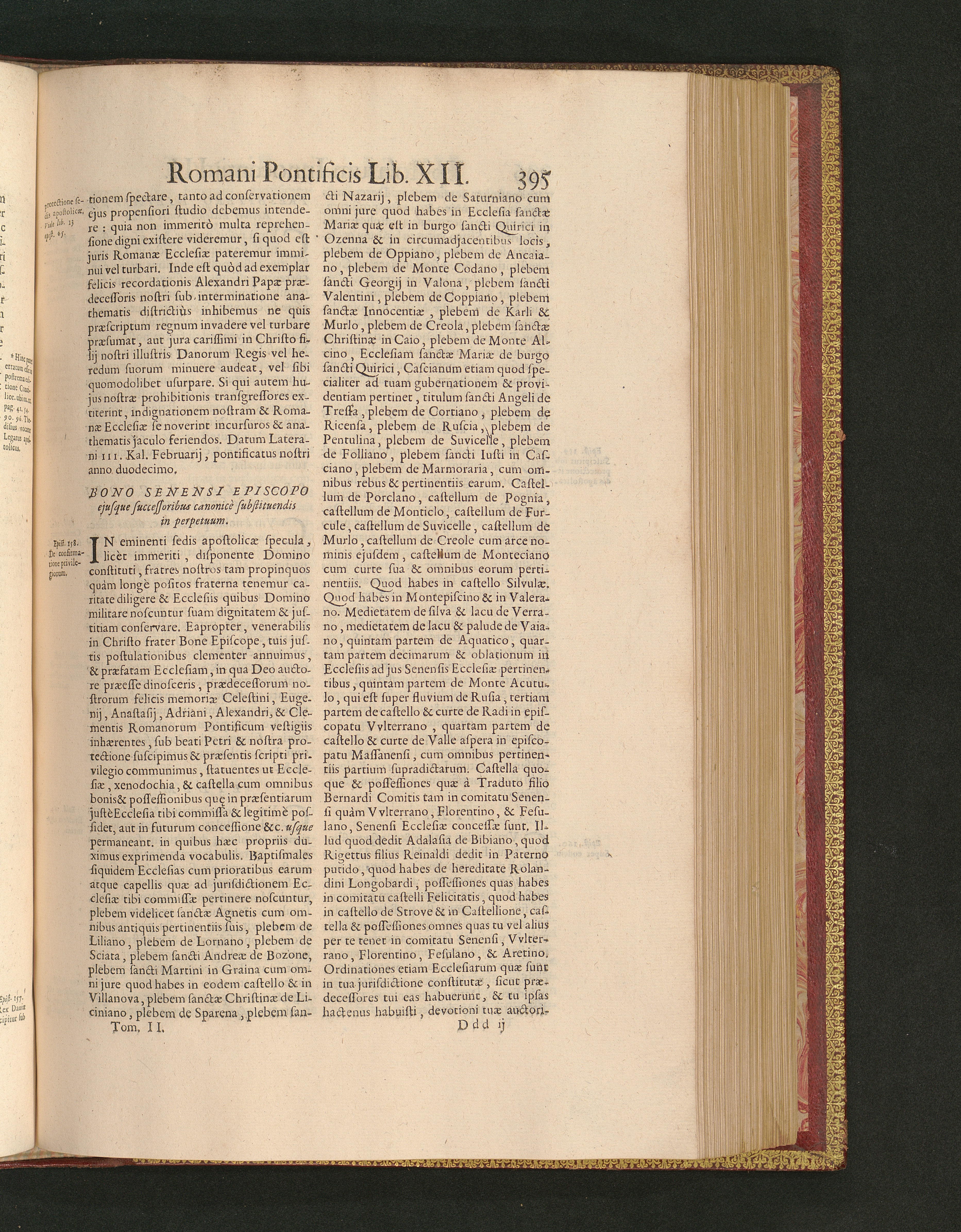 Bono Senensi Episcopo ejusque successoribus canonicè substituendis in perpetuum.