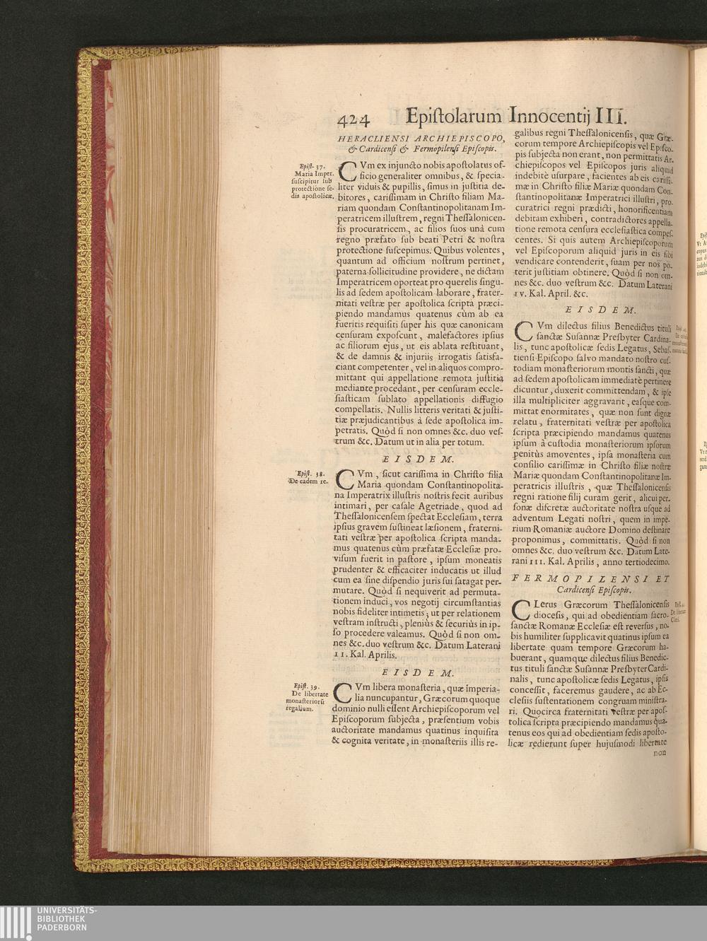 Epistolarvm Innocentii III. Romani Pontificis Libri Vndecim