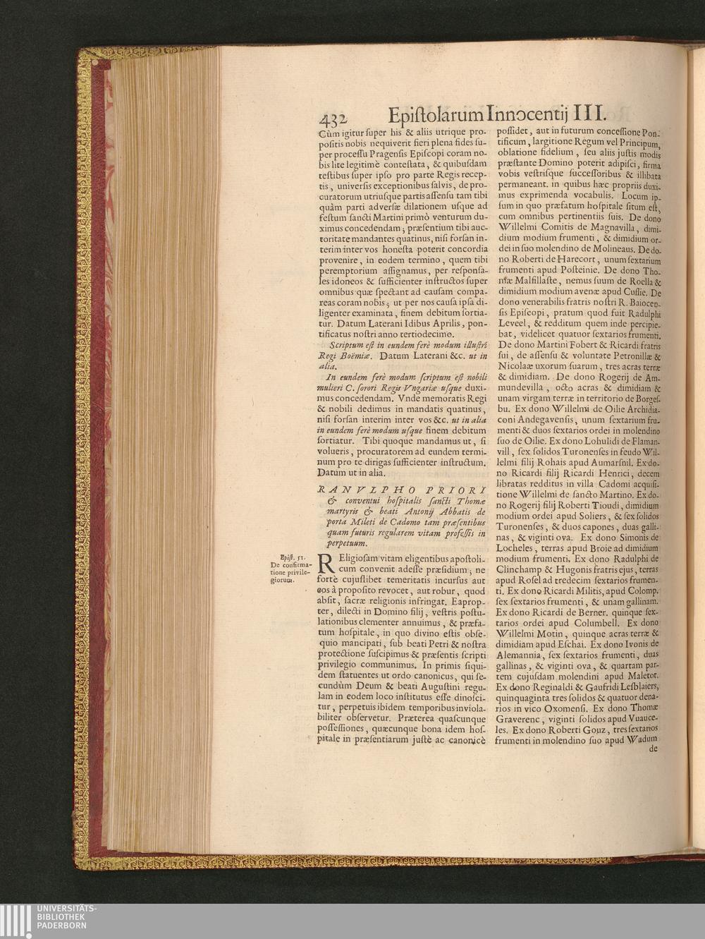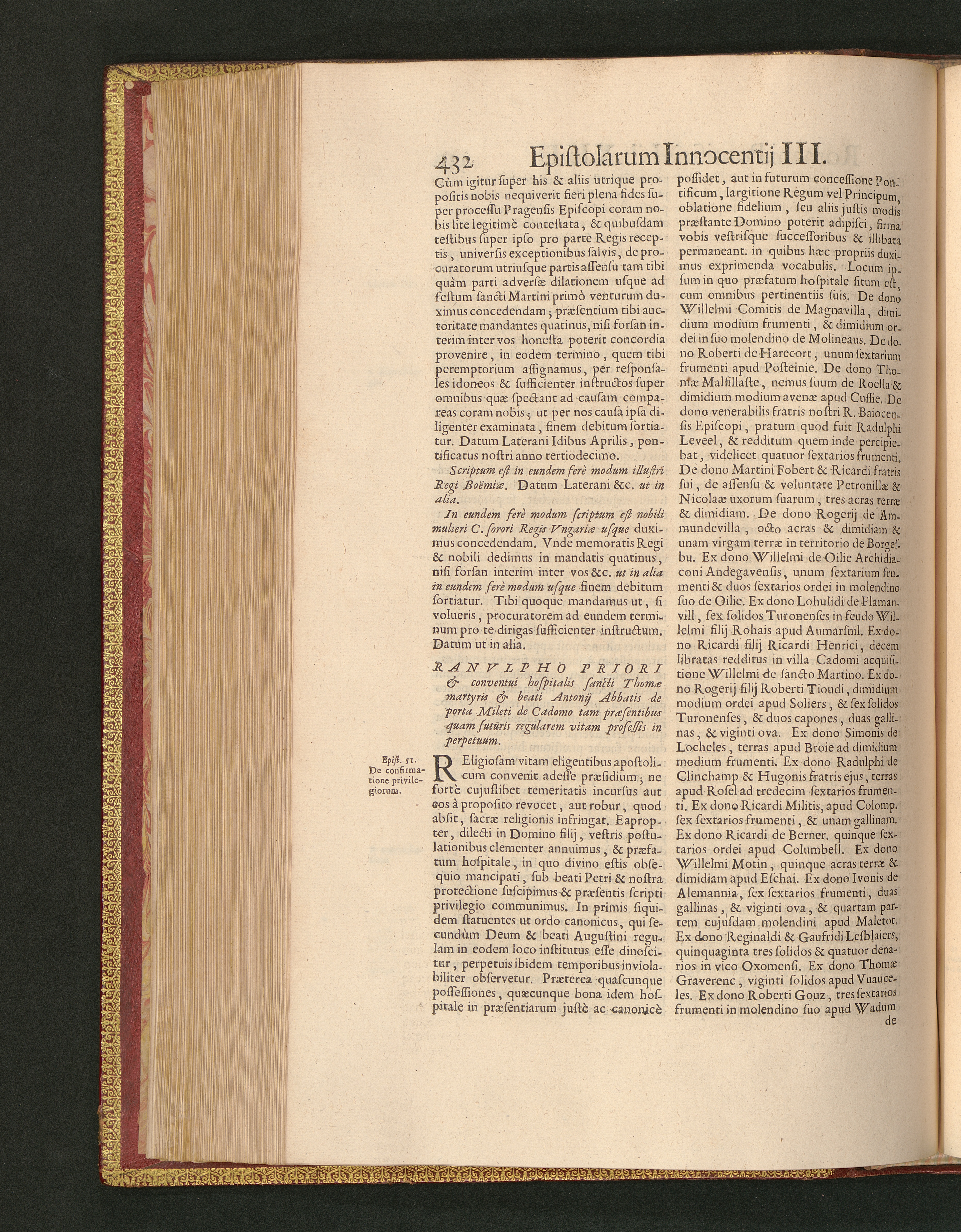 Ranvlpho Priori & conventvi hospitalis sancti Thomæ martyris & beati Antonij Abbatis[...]