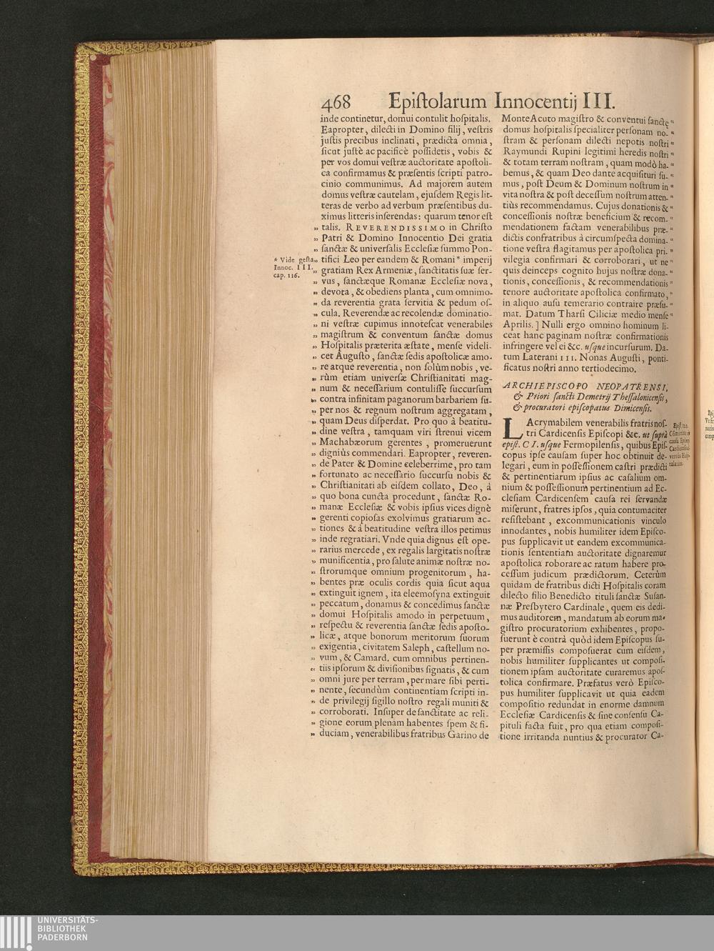 Epistolarvm Innocentii III. Romani Pontificis Libri Vndecim