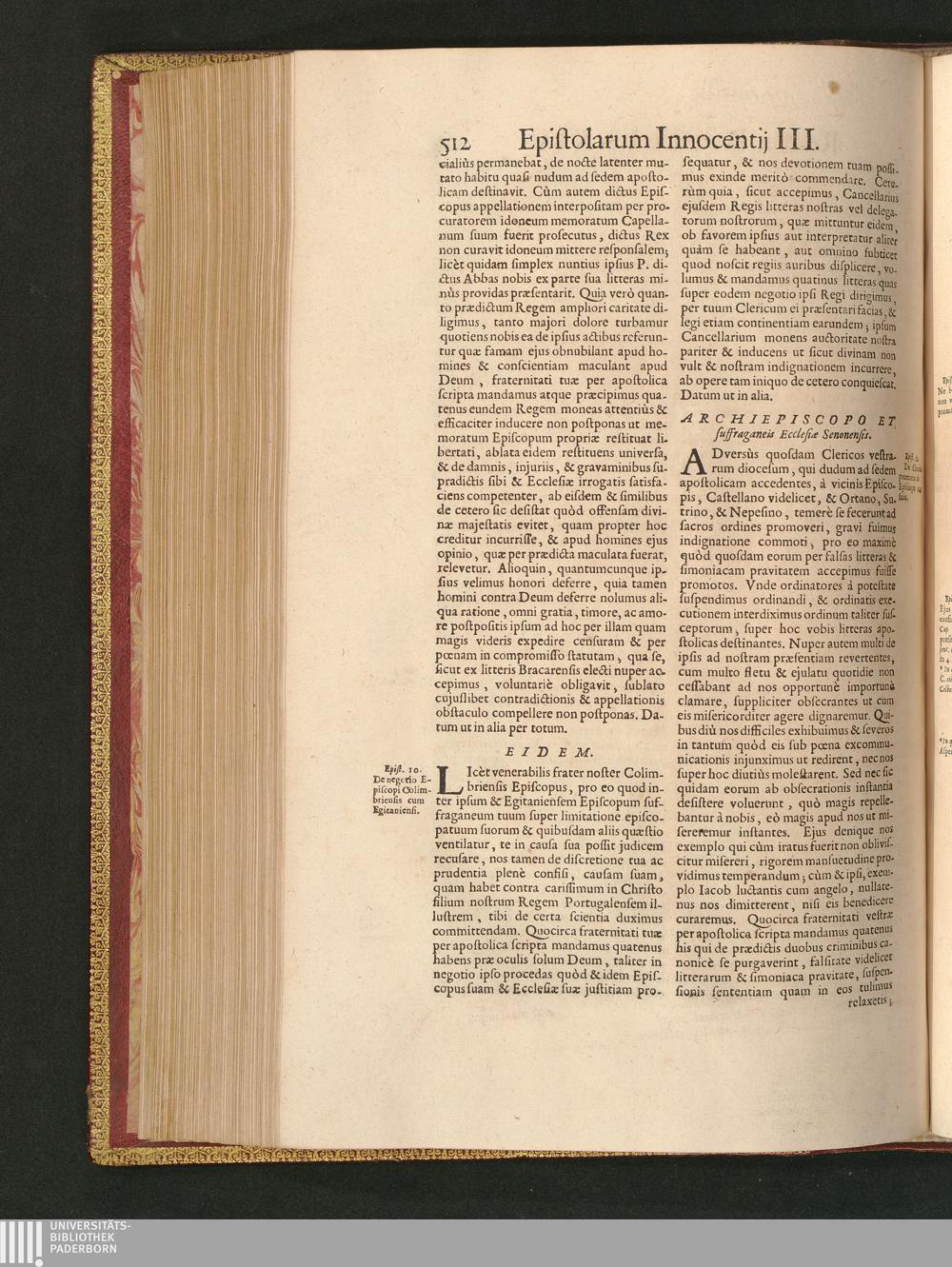 Epistolarvm Innocentii III. Romani Pontificis Libri Vndecim