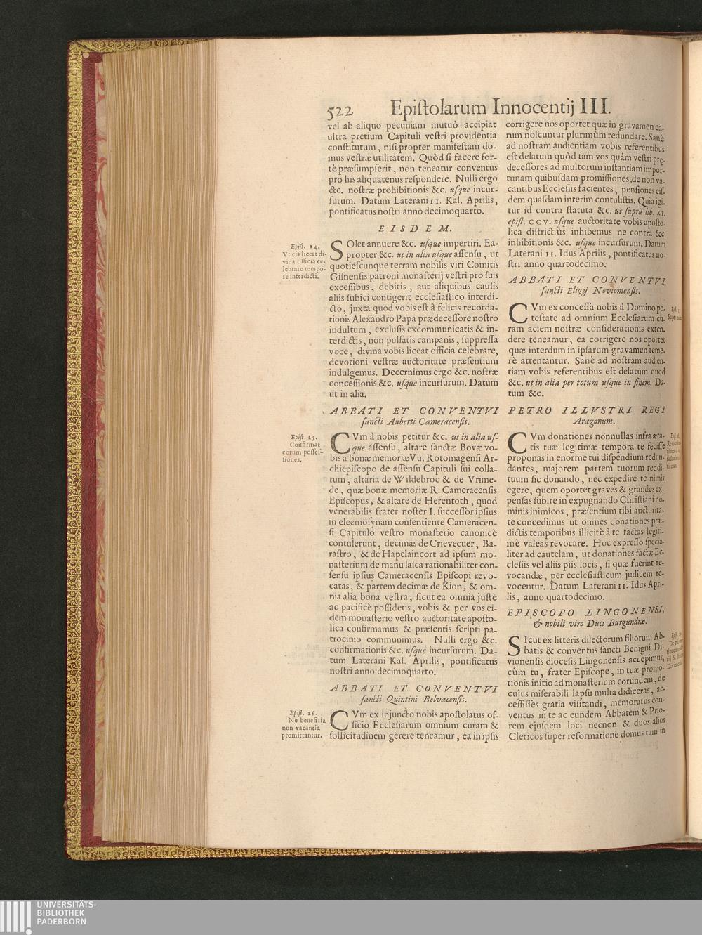 Epistolarvm Innocentii III. Romani Pontificis Libri Vndecim