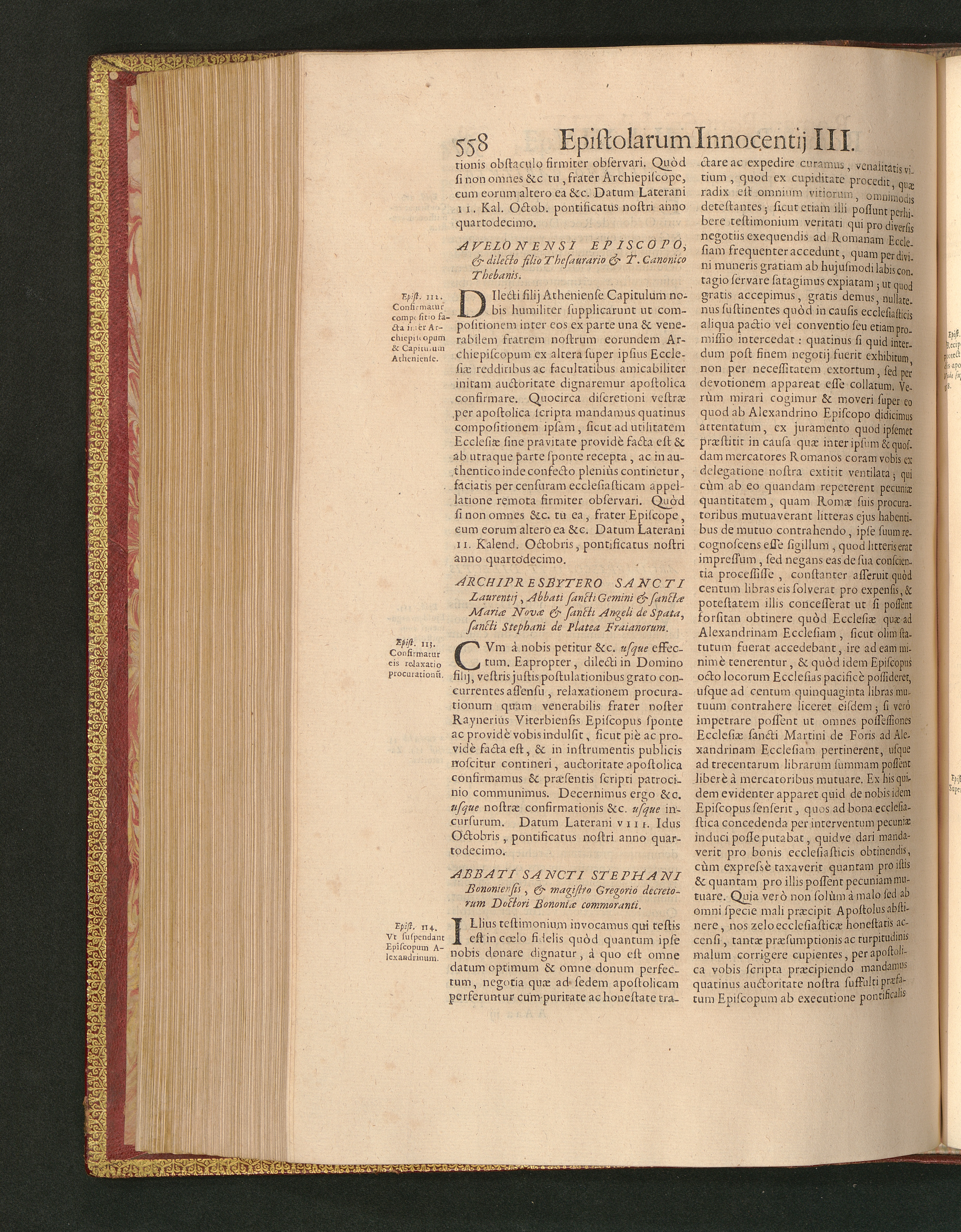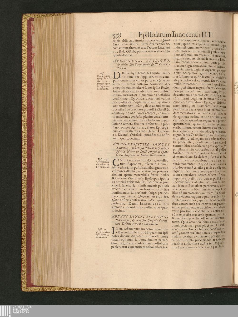 Abbati Sancti Stephani Bononiensis, & magistro Gregorio decretorum Doctori Boniniæ[...]