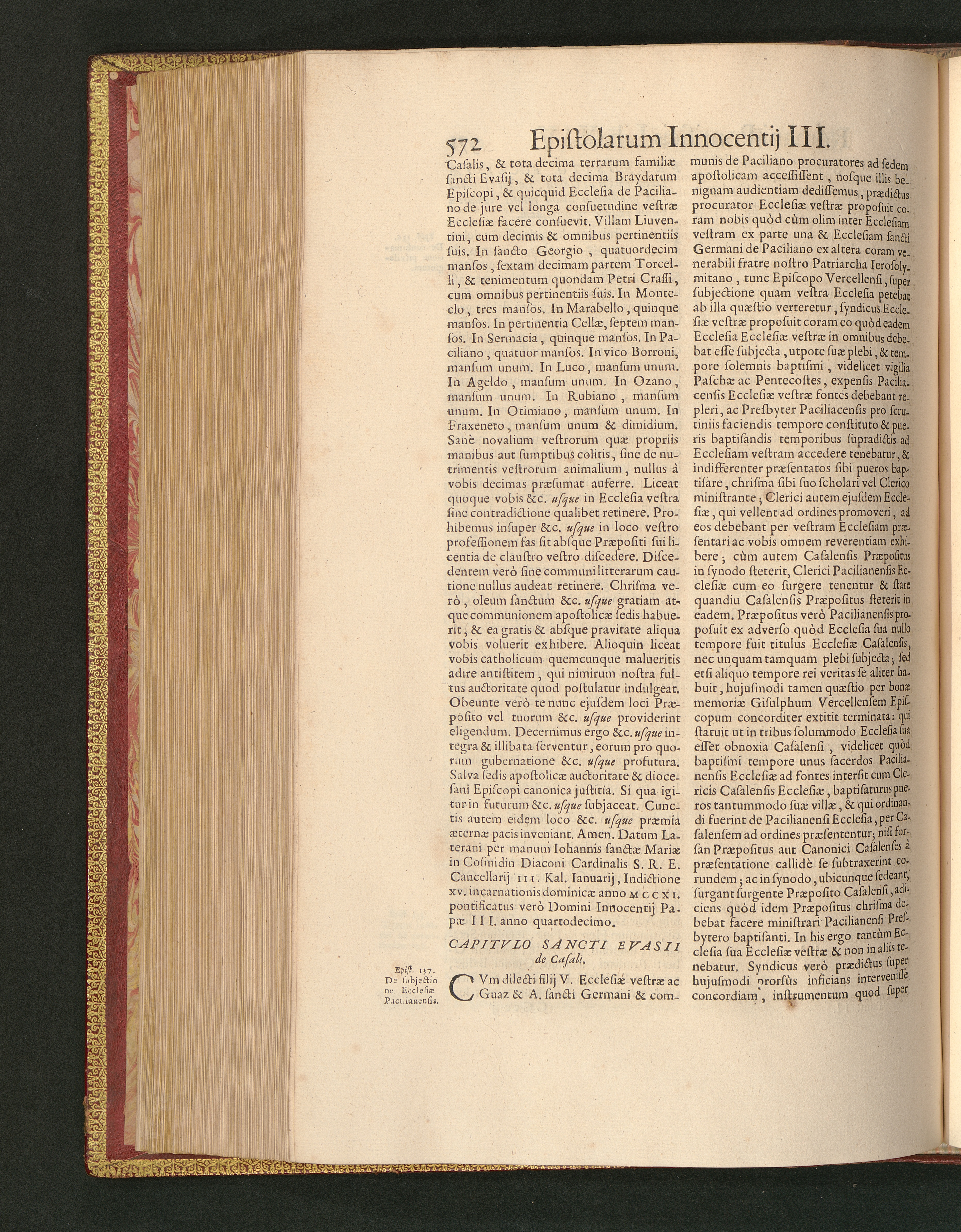 Capitvlo Sancti Evasii de Casali.
