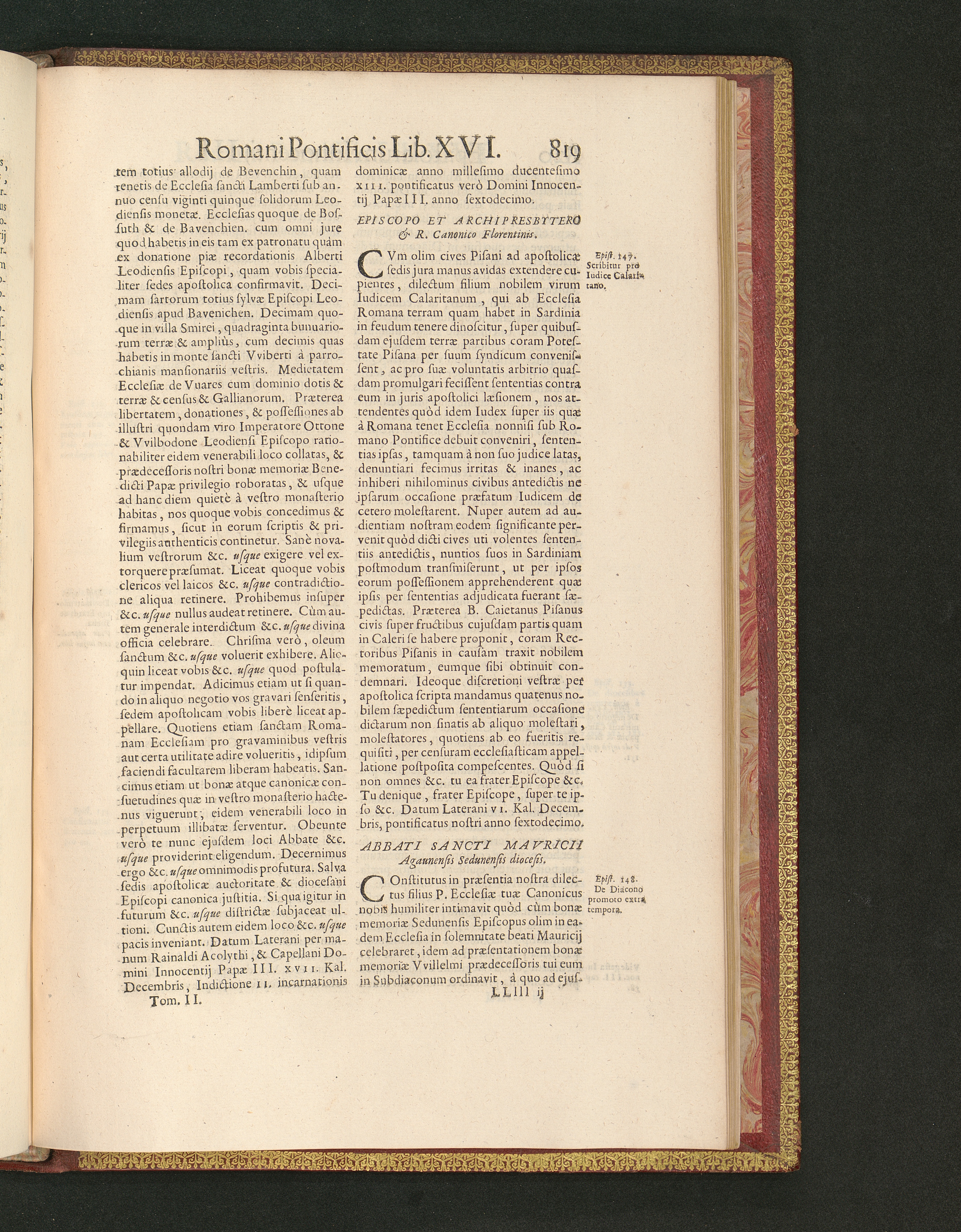 Abbati Sancti Mavricii Agaunensis Sedunensis diocesis.