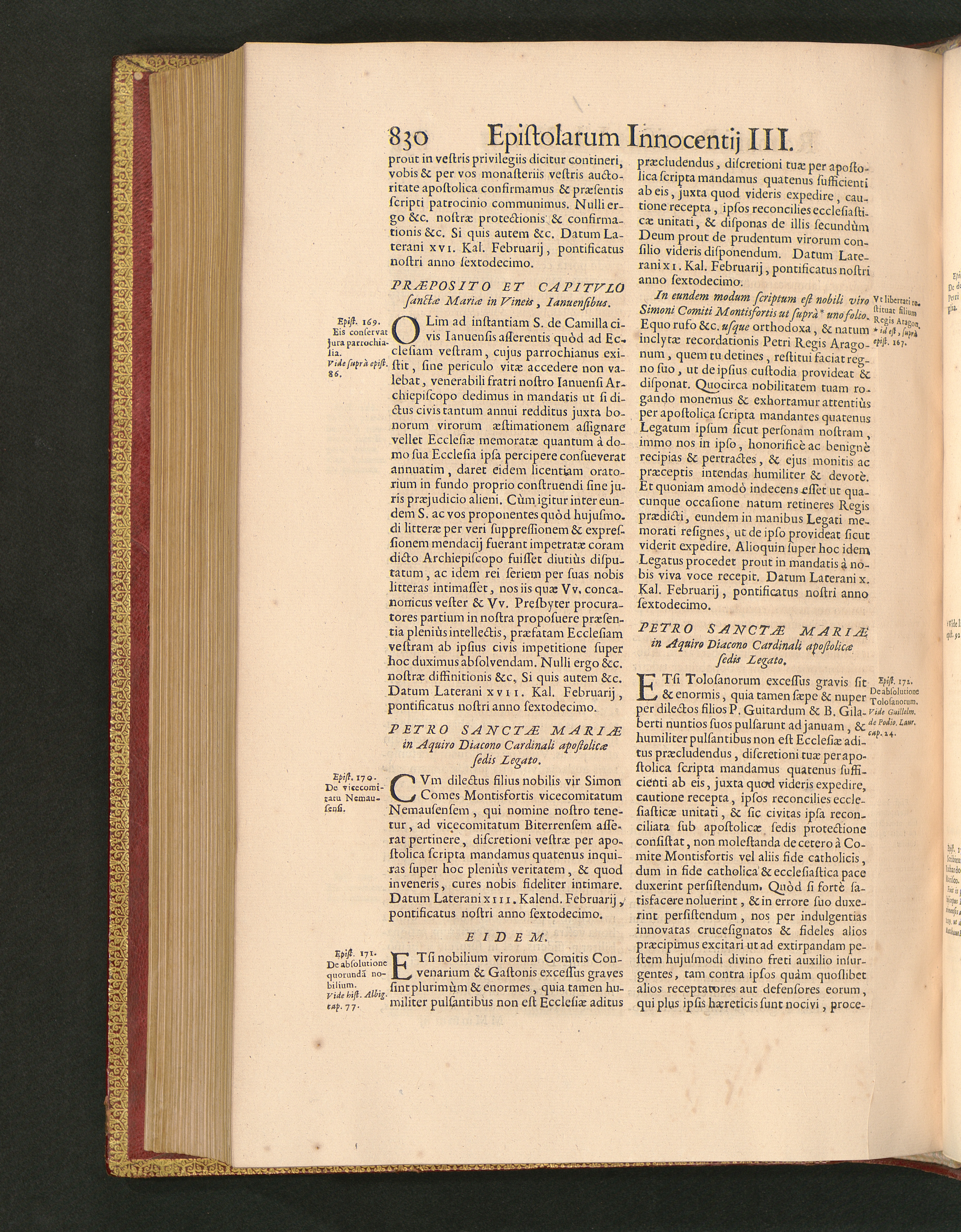 Petro Sanctæ Mariæ in Aquiro Diacono Cardinali apostolicæ sedis Legato.