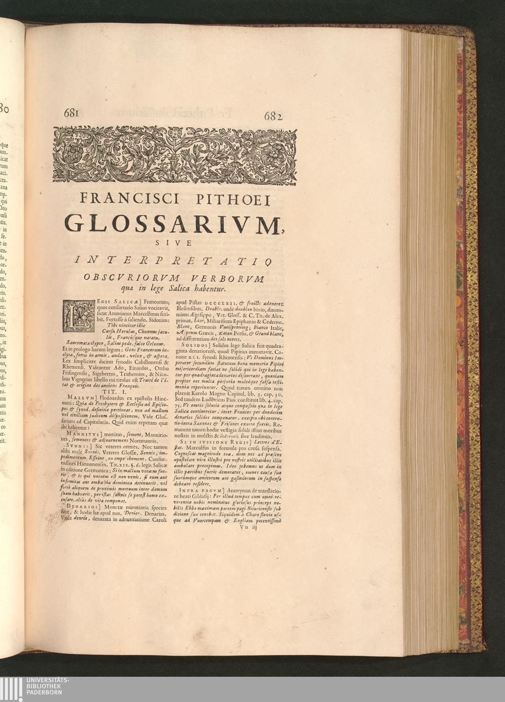 Francisci Pithoei Glossarium legis Salicae.