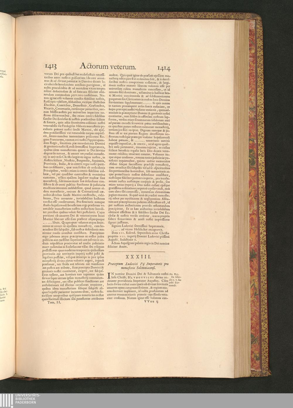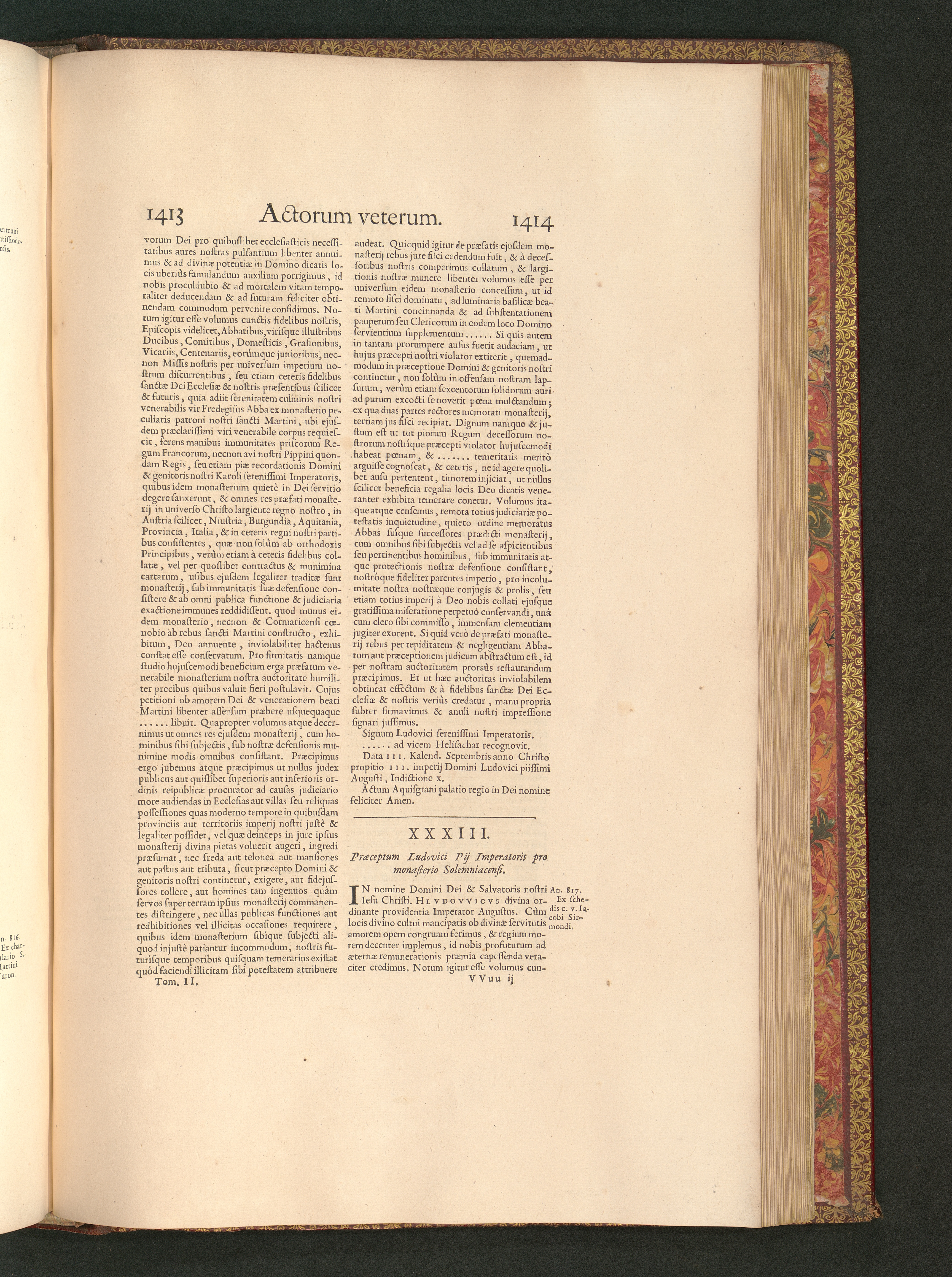 XXXIII. Praeceptum Ludovici Pij Imperatoris pro monasterio Solemniacensi.