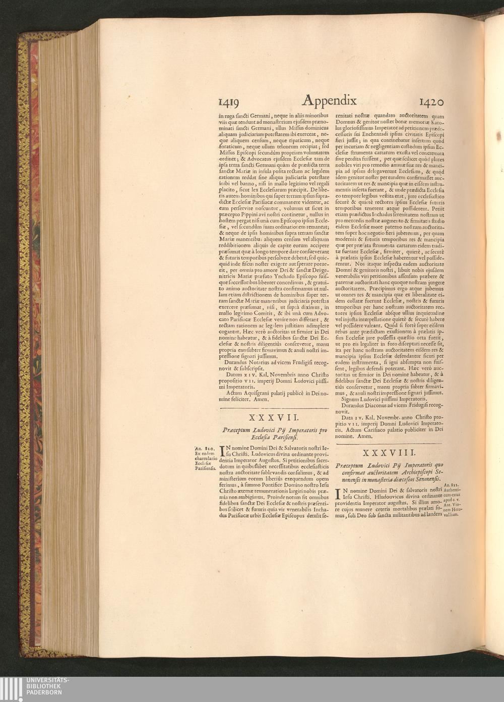 XXXVIII. Praeceptum Ludovici Pij Imperatoris quo confirmat auctoritatem Archiepiscopi[...]