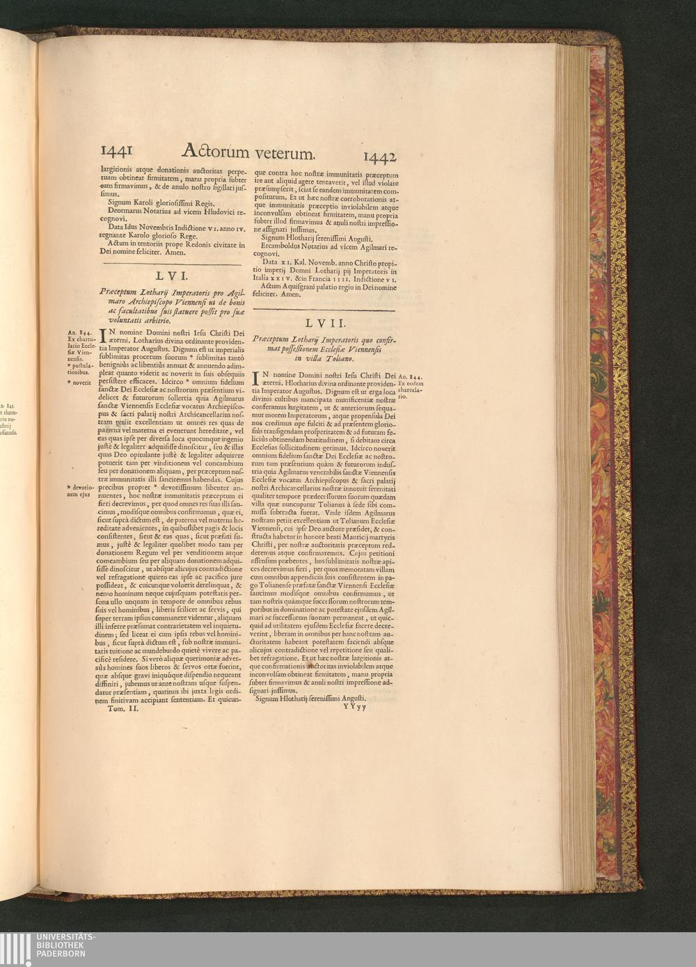 LVII. Praeceptum Lotharij Imperatoris quo confirmat possessionem Ecclesiae Viennensis[...]