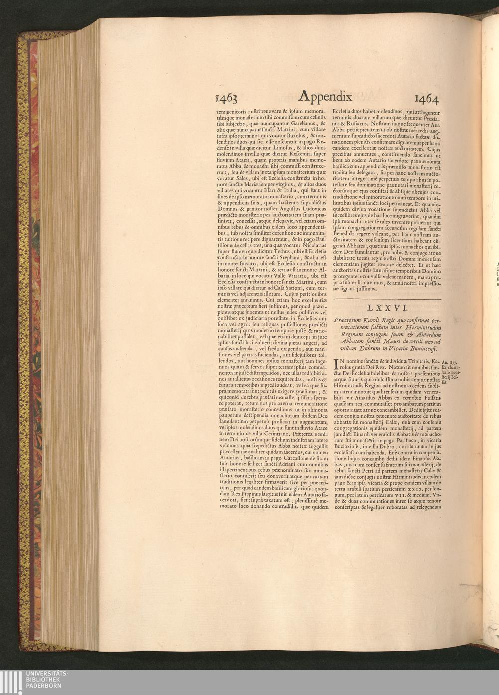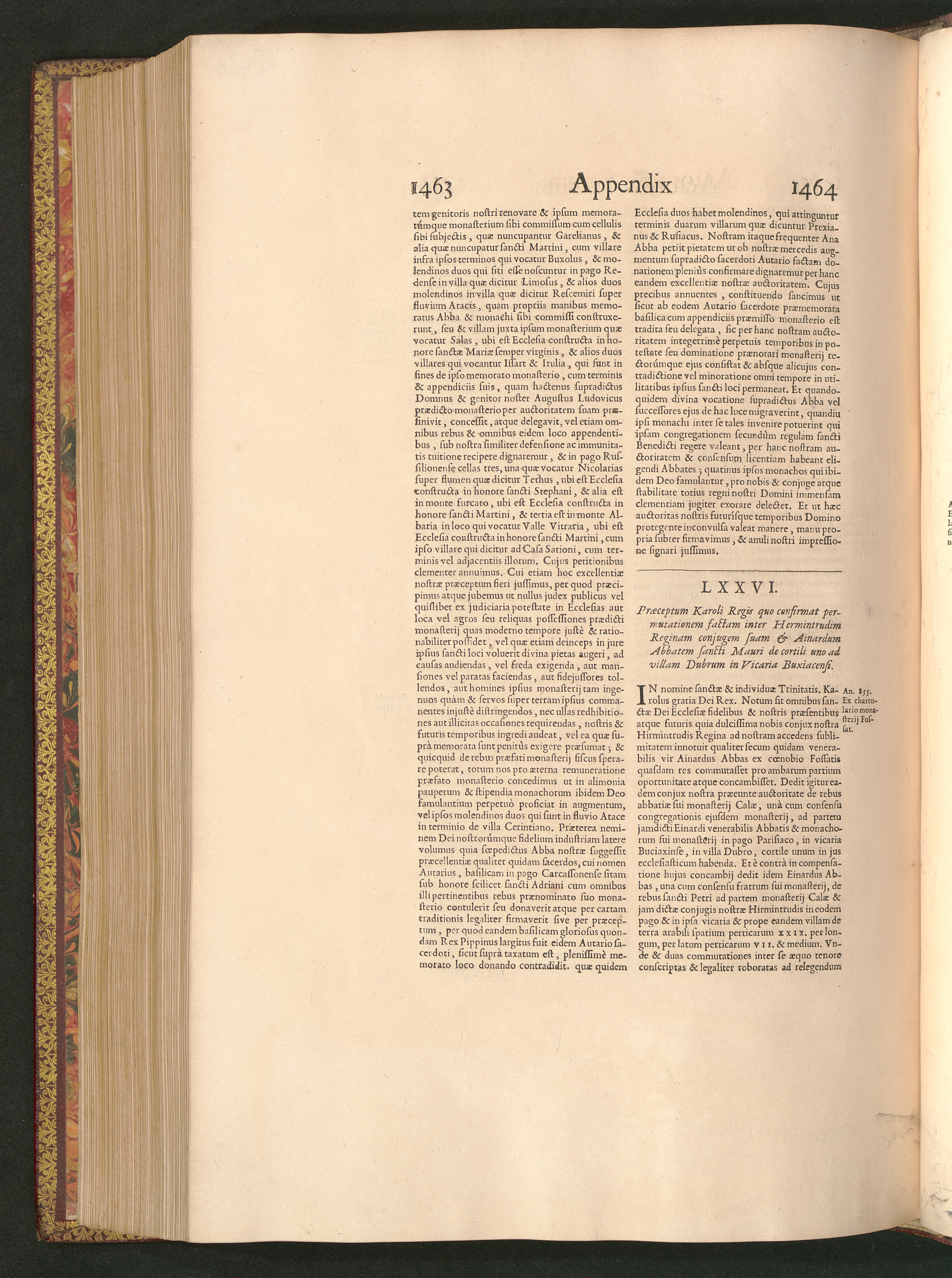 LXXVI. Praeceptum Karoli Regis quo confirmat permutationem factam inter Hermintrudim[...]
