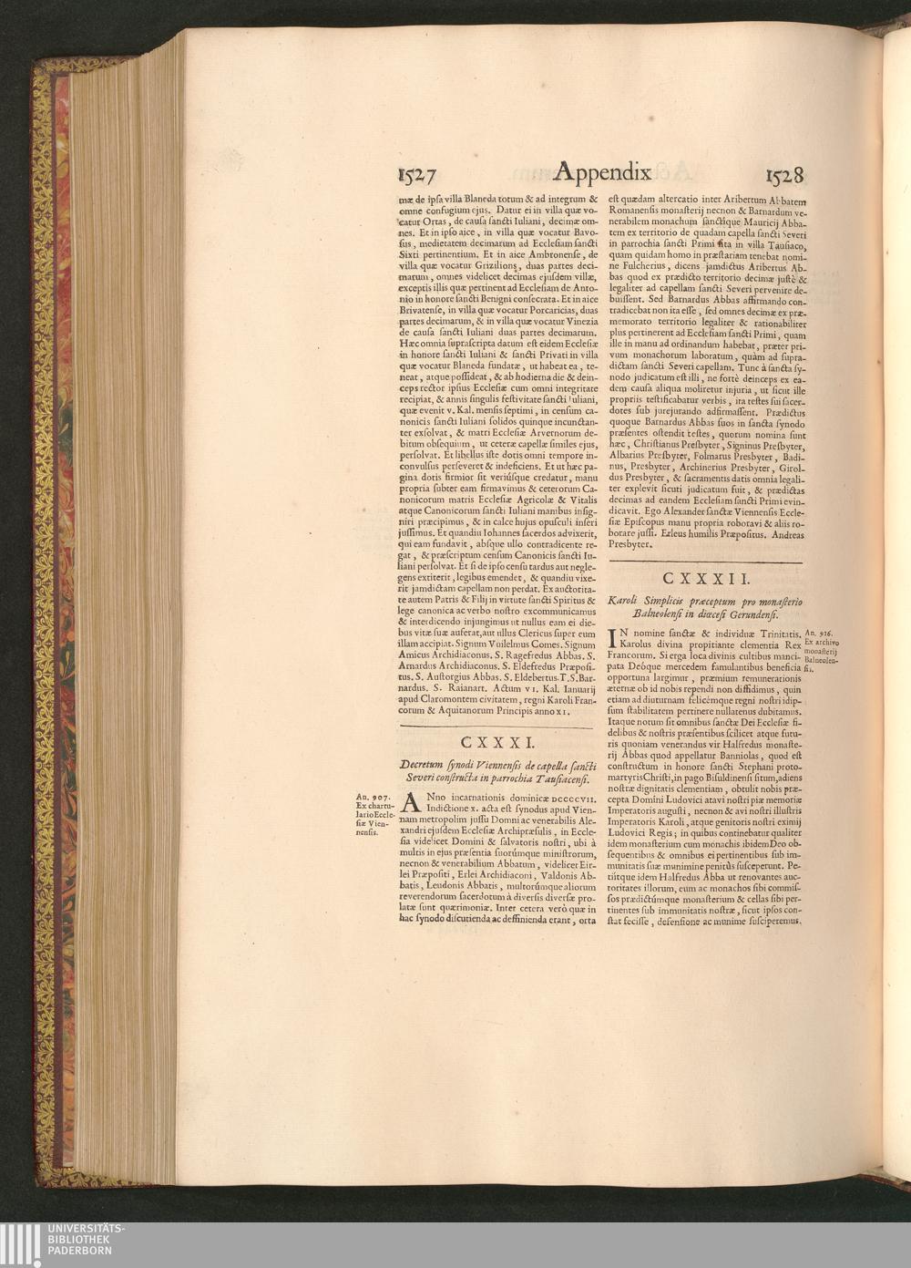 CXXXII. Karoli Simplicis praeceptum pro monasterio Balneolensi in dioecesi Gerun[...]