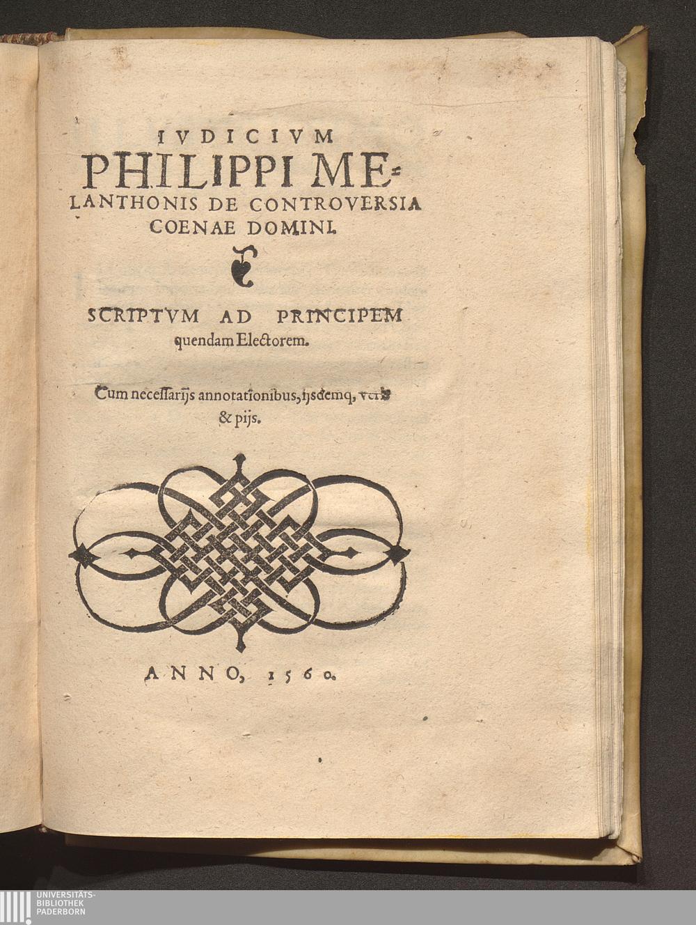 Ivdicivm Philippi Melanthonis De Controversia Coenae Domini : Scriptvm Ad Principem quendam Electorem ; Cum necessarijs annotationibus, ijsdemq[ue] veris & pijs / [Hrsg.: Nic. Gallvs]