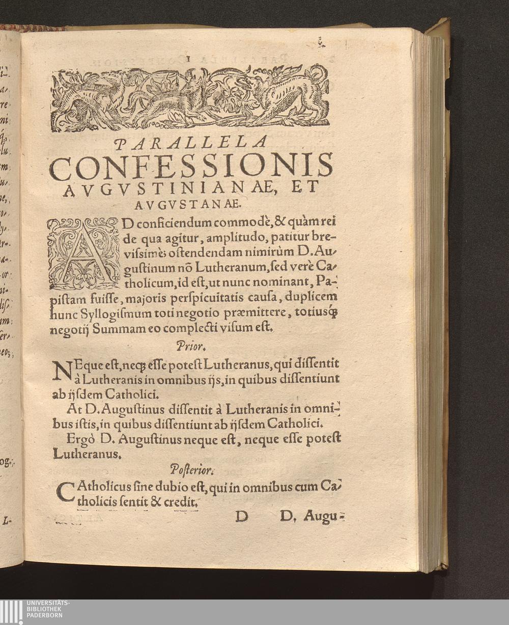 Parallela Confessionis Avgvstinianae, Et Avgvstanae : Opposita Parallelis Ioannis Cvivsdam Pappi, Lvtheranismi Doctoris: quæ nuper in lucem publicam referre non dubitavit / Avtore Georgio Haenlin, SS. Theologiae Doct. & apud Archiducalem Academiam Friburgensem Professore, & summi templi ibidem Parocho
