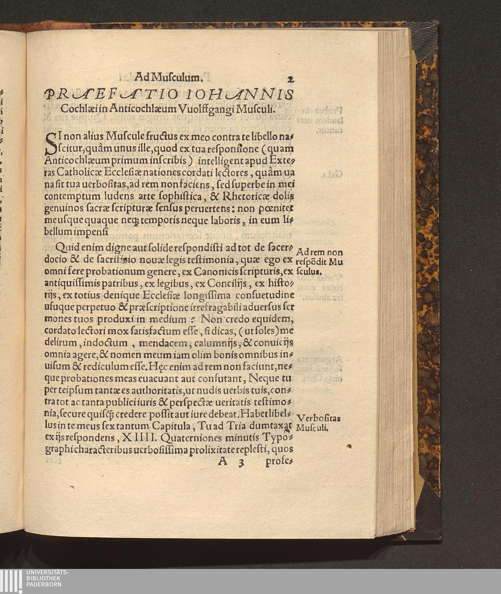 IN PRIMVM MV=||SCVLI ANTICOCHLAEVM || Replica breuis Iohannis Cochlæi, pro Sacerdotij & || Sacrificij nouæ legis assertione.|| IN EPILOGO ADIECTA || est breuis responsio in Antibolen Bullingeri.|| ADDITA EST APPEN=||dix gemina in librum Buceri, quem in Bart.|| Latomum ædidit.|| ... ||