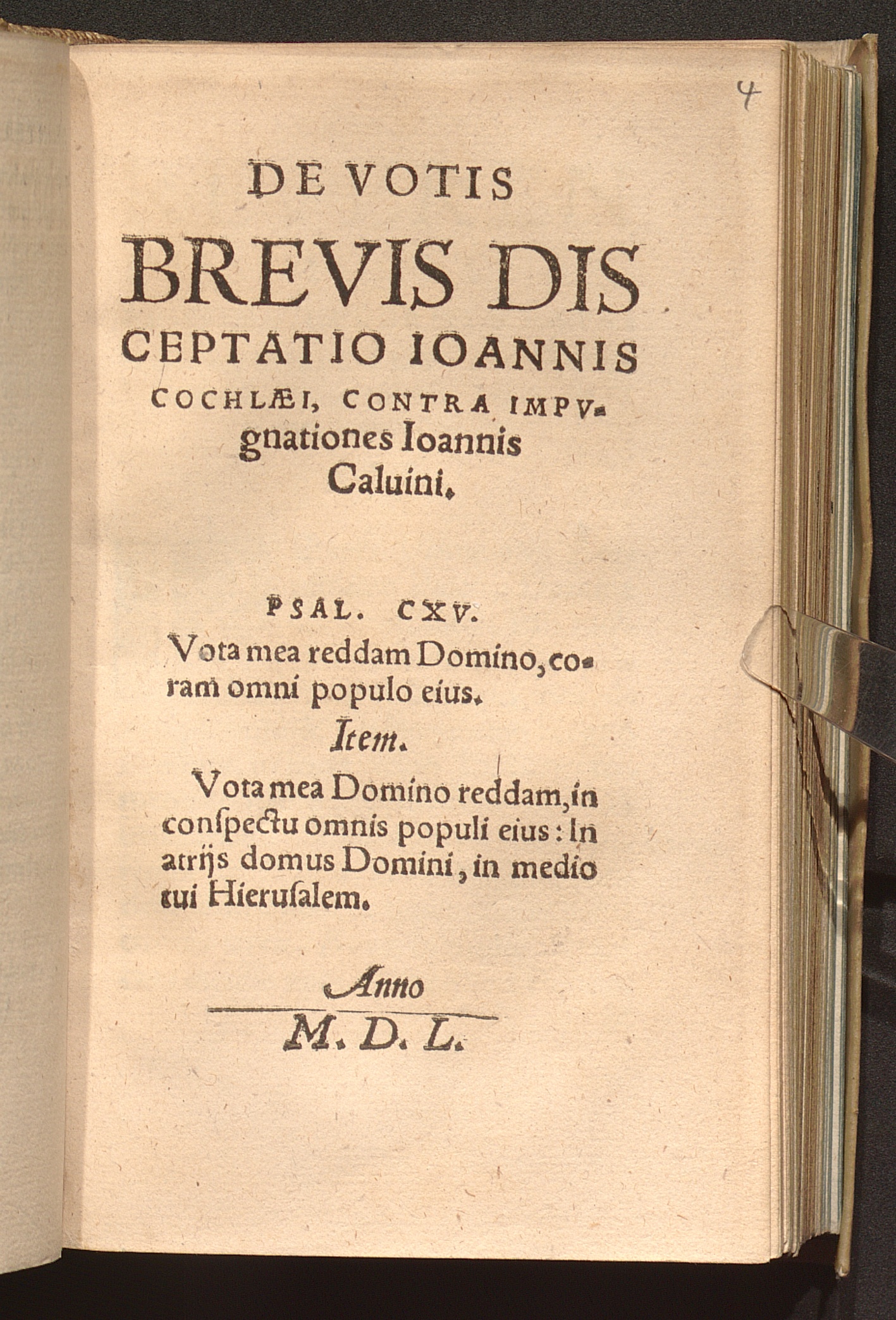 De Votis Brevis Disceptatio Ioannis Cochlæi, Contra Impvgnationes Ioannis Caluini